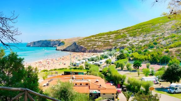 Sielsko, beztrosko i… pięknie! Wymarzona propozycja dla rodzin z dziećmi, uwielbiających kempingi i ceniących bliski kontakt z naturą. Zachwyci Cię lokalizacja – wszechobecna zieleń lasów sosnowych Parku Narodowego Gargano to obietnica spokojnych wakacji, plaża jest idealna na morskie kąpiele i odpoczynek, a pobliskie Peschici, którego nazwa oznacza „drobny piasek”, wyróżnia się malowniczą starówką, wąskimi alejkami i ciekawą architekturą. Aktywni mogą skorzystać z kortu tenisowego, dzieciaki poszaleją na placu zabaw, a później wspólnie z pociechami możecie wziąć udział w wesołych animacjach! Poczuj się jak w domu, z dala od zgiełku miast!