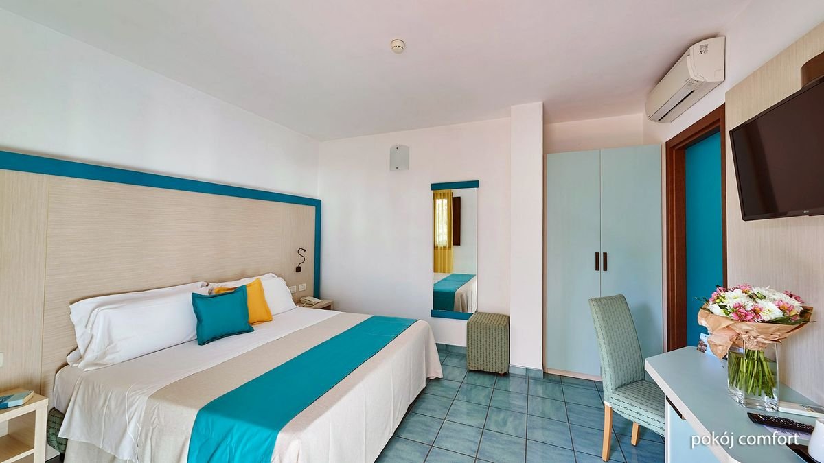 comfort: 2-os., ok. 20 m², klimatyzowany, łazienka (wc, prysznic; suszarka), internet bezprzewodowy, telewizor, telefon, sejf, minibar (płatny); balkon, taras lub patio; suite: 2-os. (możliwość 1 lub 2 dostawek), ok. 30 m², wyposażenie jak w pokoju comfort; suite za dopłatą; suite superior: 2-os. (możliwość 1 lub 2 dostawek), ok. 30 m², 2 łazienki, 2 pomieszczenia, wyposażenie jak w pokoju comfort; suite superior za dopłatą.
