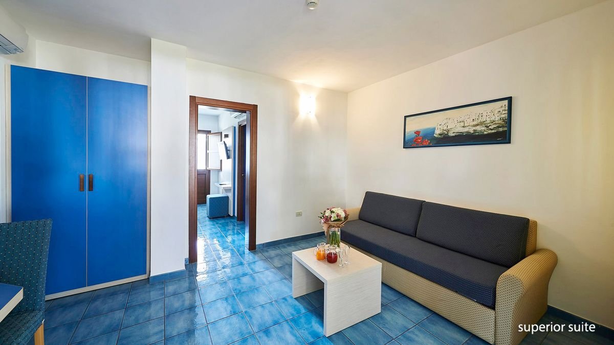 czterogwiazdkowy, zbudowany w 2010 r., 191 pokoi, 2 piętra, winda, całodobowa recepcja, 2 restauracje: główna z widokiem na Adriatyk – kuchnia śródziemnomorska i międzynarodowa; restauracja Il Pugliese – à la carte (wymagana wcześniejsza rezerwacja); 2 bary: przy basenie i przy plaży; wymiana walut, sklep z pamiątkami, przechowalnia bagażu, parking; taras; bezpłatny internet bezprzewodowy; za opłatą: pralnia, usługa prasowania; akceptowane karty kredytowe: Visa, MasterCard, American Express.