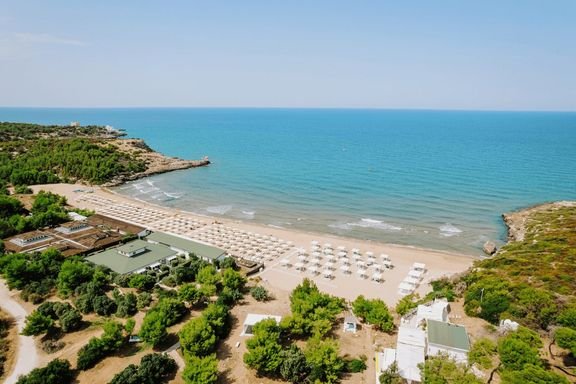 Marzysz o spokojnym wypoczynku wśród natury i pięknych krajobrazów? Odwiedź malowniczą Apulię i na swój pobyt wybierz elegancki resort ukryty między wzgórzami i urokliwą zatoką. Otoczony śródziemnomorskim ogrodem, położony tylko kilka kroków od piaszczystej plaży, oferuje wszystko, co potrzebne do relaksującego pobytu. Popływaj w basenie zatopionym pośród zieleni, wybierz się na odprężający masaż do hotelowego spa, a wieczorem odpocznij w zaciszu komfortowego pokoju. Do dyspozycji są również 2 restauracje serwujące lokalne przysmaki oraz 4 bary, które umilą każdą porę dnia. A jeśli masz ochotę na więcej ruchu – korty tenisowe i boiska znajdują się w zasięgu ręki. To idealne miejsce, by wyciszyć się i odetchnąć z dala od codziennych trosk.