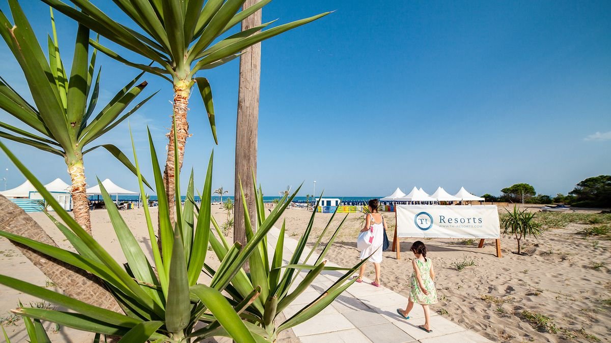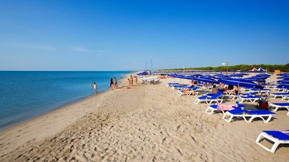hotelowa, piaszczysta, ok. 500 m od budynku głównego, dojście alejką piniową lub przejazd kolejką turystyczną, bezpłatne parasole i leżaki (parasol i 2 leżaki/pokój).