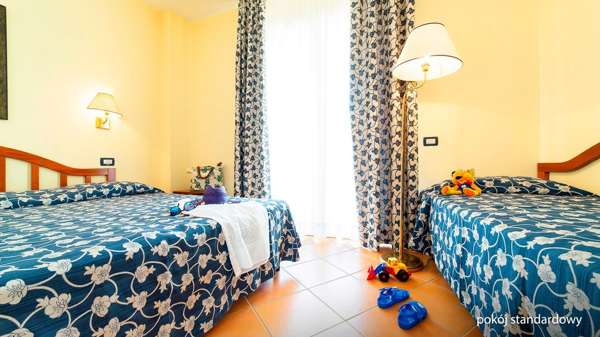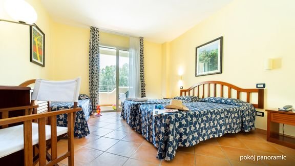 standardowy: 2-os. (możliwość 2 dostawek), ok. 43 m², klimatyzowany, łazienka (prysznic, wc; suszarka), telewizor, minibar (płatny); łóżeczko dla dziecka do 2 lat na zamówienie przed przyjazdem (płatne: ok. 42 EUR); balkon lub taras; panoramic: 2-os. (możliwość 1 dostawki), ok. 43 m², wyposażenie jak w pokoju standardowym, widok na ogród i las; pokój panoramic za dopłatą.
