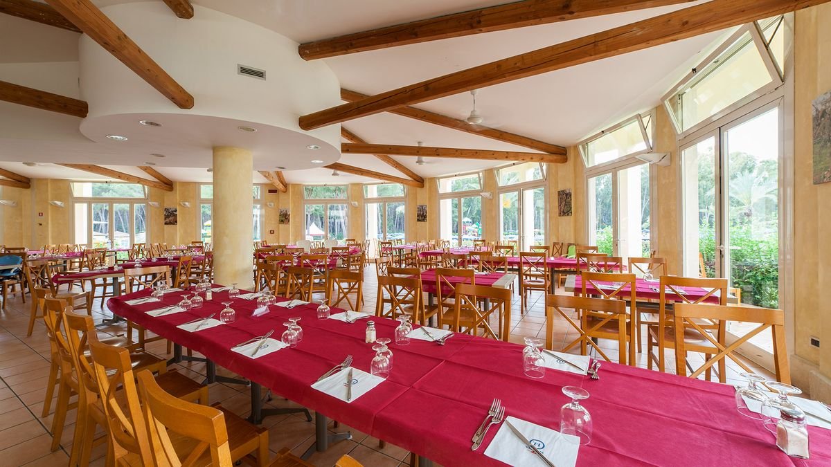 śniadanie (7.30-10.00), obiad (12.30-14.00), kolacja (19.30-21.00) w formie bufetu w restauracji Il Pugliese, możliwość samodzielnego przygotowania posiłków i przekąsek dla rodziców z dziećmi w wydzielonej przestrzeni kuchennej; przekąski (10.00-11.30, 19.00-19.30); popołudniowa herbata (17.00-18.00); lody w porze obiadowej, pizza; lokalne napoje alkoholowe, piwo i kawa serwowane w wyznaczonym barze oraz napoje bezalkoholowe dostępne w automatach (10.00-23.00).