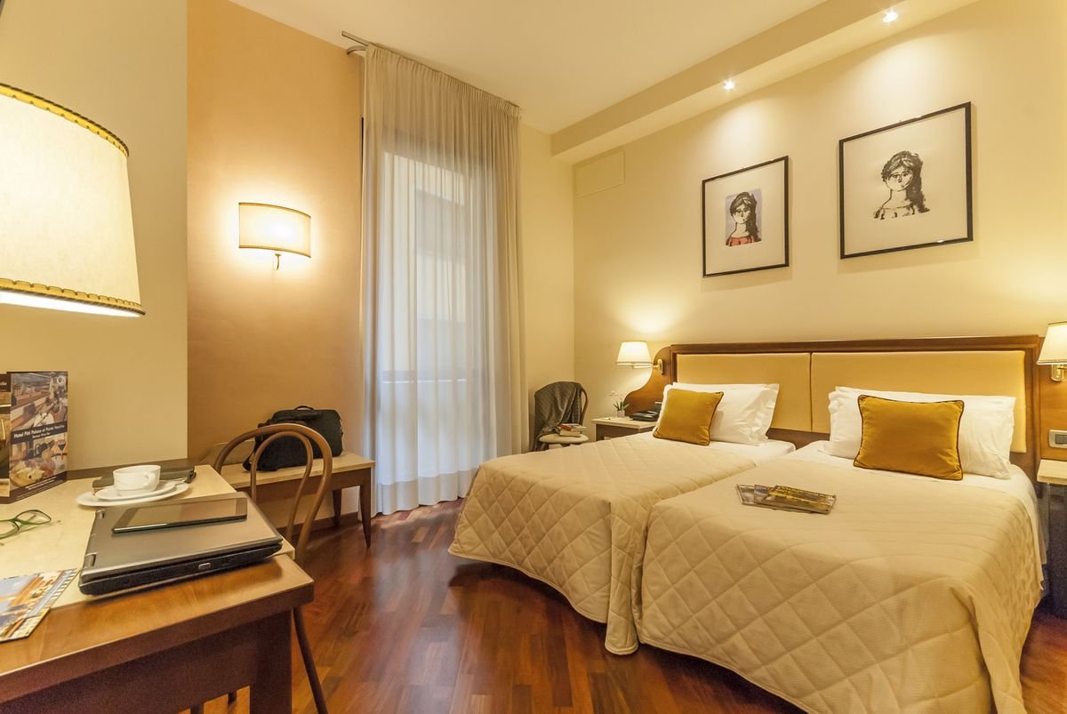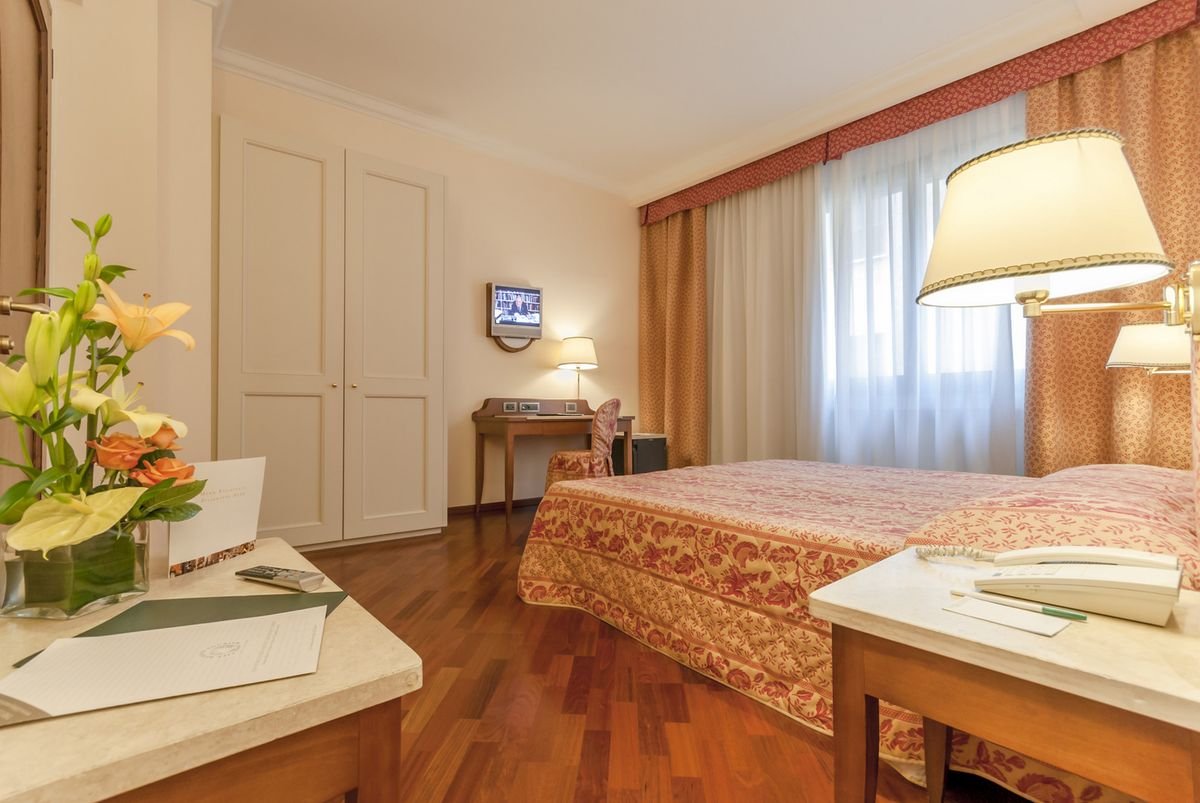trzygwiazdkowy, regularnie odnawiany, 73 pokoje, 6 pięter, winda, lobby, całodobowa recepcja, restauracja Alla Torre De 'Rossi z tarasem – śniadania w formie bufetu, obiady i kolacje à la carte, kuchnia międzynarodowa i toskańska, bar; bezpłatny internet bezprzewodowy; za opłatą: pralnia, usługa prasowania; akceptowane karty kredytowe: Visa, MasterCard, American Express.