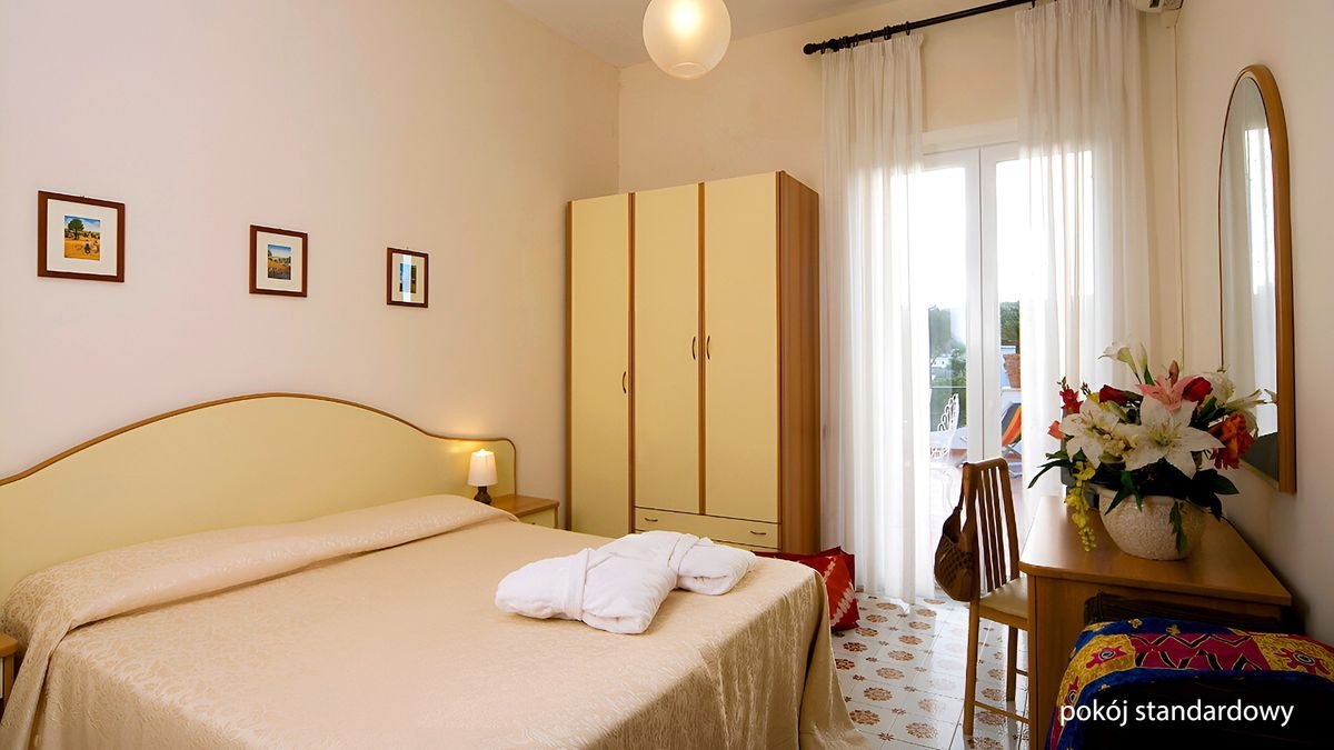 Kameralny, rodzinny hotel położony na urokliwym wzgórzu z zachwycającymi widokami na Ischię to doskonałe miejsce na urlop pełen wyciszenia i relaksu. Na Gości czekają tutaj baseny termalne, z których słynie wyspa, restauracja serwująca pyszne dania kuchni śródziemnomorskiej, świetnie rozmieszczone bary i centrum spa z bogatą ofertą zabiegów pielęgnacyjnych. Pomocna i miła obsługa tworzy rodzinną atmosferę, która idzie w parze ze słynną włoską gościnnością – tutaj każdy poczuje się jak w domu! W pobliżu hotelu znajdują się doskonałe tereny do spacerów wśród pięknej przyrody, a od najbliższej plaży dzieli go zaledwie krótki spacer. Zwiedzanie okolicy ułatwi przystanek autobusowy znajdujący się niemal przy hotelu! Pozwól sobie na odrobinę relaksu pod słońcem Italii!