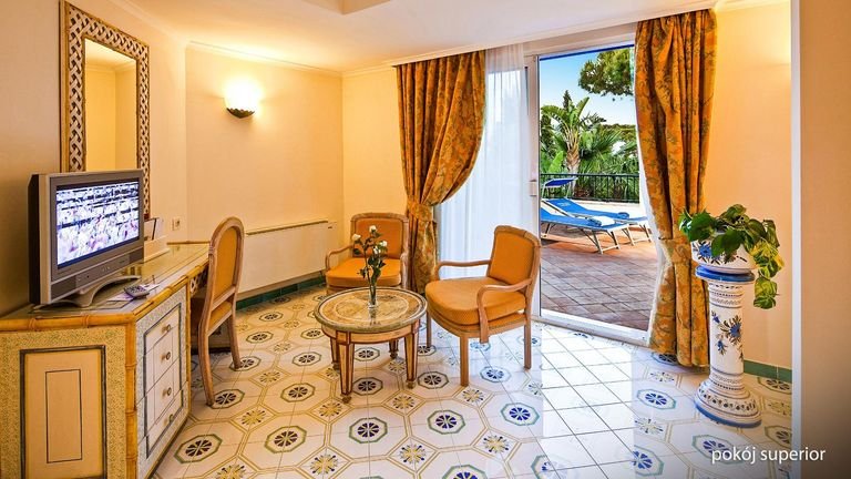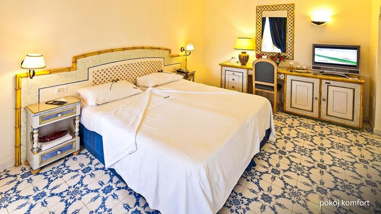 Ischia w najlepszym wydaniu, czyli morze i zachwycające widoki na wyciągnięcie ręki. Hotel położony blisko plaży, skąd rozpościera się niezwykła panorama Zatoki Neapolitańskiej i znajdują się tarasy do opalania, zbudowane na kamieniach wulkanicznych. Po prostu relaks w pięknej scenerii! Kucharz dokłada tu wszelkich starań, by pyszne potrawy, sporządzane z najlepszych składników, trafiły w gusta najbardziej wymagających. Dopełnieniem świetnego klimatu jest centrum spa z basenami termalnymi, stylizowane na wnętrze jaskinii, w którym znajduje się również tropikalna roślinność.