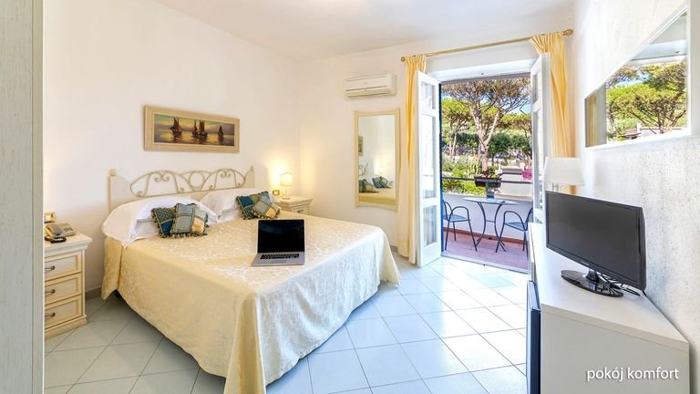 Odkryj swój kawałek raju! Malowniczo położony na klifie, otoczony zielenią, urządzony w śródziemnomorskim stylu, idealnie wtapia się w piękny krajobraz. Największym atutem są tutaj zapierające dech widoki na morze i okolicę – można je podziwiać bez końca! Na miejscu basen i centrum spa z krytym basenem, więc zaplanuj czas na pływanie lub odpoczynek na leżaku. Do centrum Forio i na plażę Citara wygodnie dojedziesz bezpłatnym busem z hotelu.