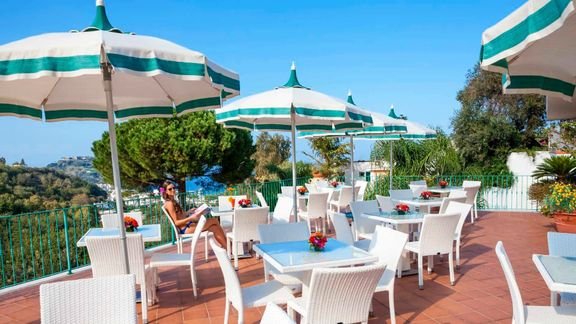 Pięknie usytuowany na wzgórzu z widokiem na morze i w otoczeniu śródziemnomorskiego ogrodu, to idealne miejsce na słoneczny wypoczynek i regenerację. Na terenie hotelu znajduje się aż 7 basenów, z czego 2 są z wodą termalną oraz 2 w strefie spa, które zapewnia także bogaty wybór zabiegów pielęgnacyjnych i leczniczych. Na Gości czeka również restauracja serwująca kuchnię włoską, oparta na owocach i warzywach z własnych upraw, a także bar, gdzie można spróbować win z prywatnej winnicy – znakomity sposób na poznanie Ischii „od kuchni". Warto również połączyć relaks ze zwiedzaniem i udać się do pobliskiego Casamicciola Terme, nieco dalej do Forio – najstarszego miasta na wyspie lub do słynnego Zamku Aragońskiego.