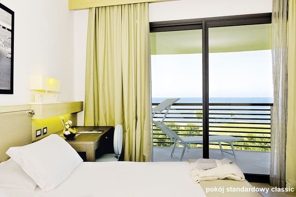 standardowy-classic: 2-os. (możliwość 1 dostawki), ok. 30 m², elegancki i nowoczesny, indywidualnie sterowana klimatyzacja, łazienka (wanna lub prysznic, wc; suszarka, szlafroki, kapcie), telewizja satelitarna, telefon, mini-bar (płatny wg konsumpcji); bezpłatne łóżeczko dla dziecka do 2 lat na zamówienie przed przyjazdem; balkon lub taras (stolik i krzesełka); ; superior 2-os. (możliwość 1 lub 2 dostawek), wyposażenie jak w pokoju classic, dodatkowo widok na morze.