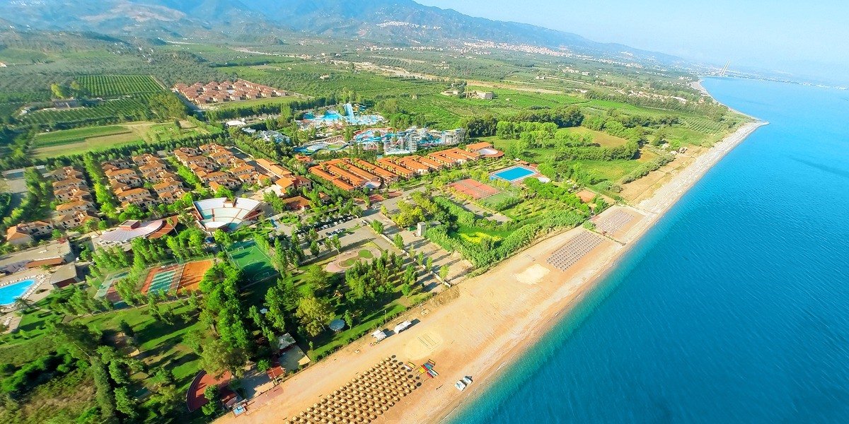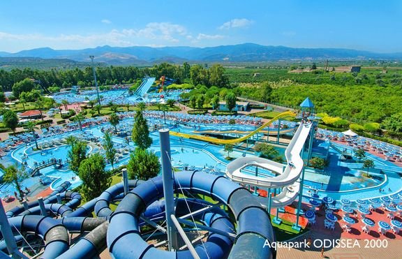 Położony pomiędzy zielonymi górami i błękitnym morzem, tuż przy pięknej, prywatnej plaży, doskonałej również dla amatorów aktywnego wypoczynku. Otoczony zielenią, wakacyjny kompleks to doskonały wybór na beztroskie, rodzinne wakacje – hotel słynie ze swobodnej atmosfery i świetnie przygotowanych animacji. Na miejscu są aż 3 baseny, 2 korty tenisowe i wiele możliwości spędzenia wolnego czasu. Wieczorami w hotelu organizowane są przedstawienia i pokazy, w ciągu dnia można się wybrać do pobliskiego Aquaparku ODISSEA 2000 ze zjeżdżalniami i mnóstwem atrakcji nie tylko dla najmłodszych.