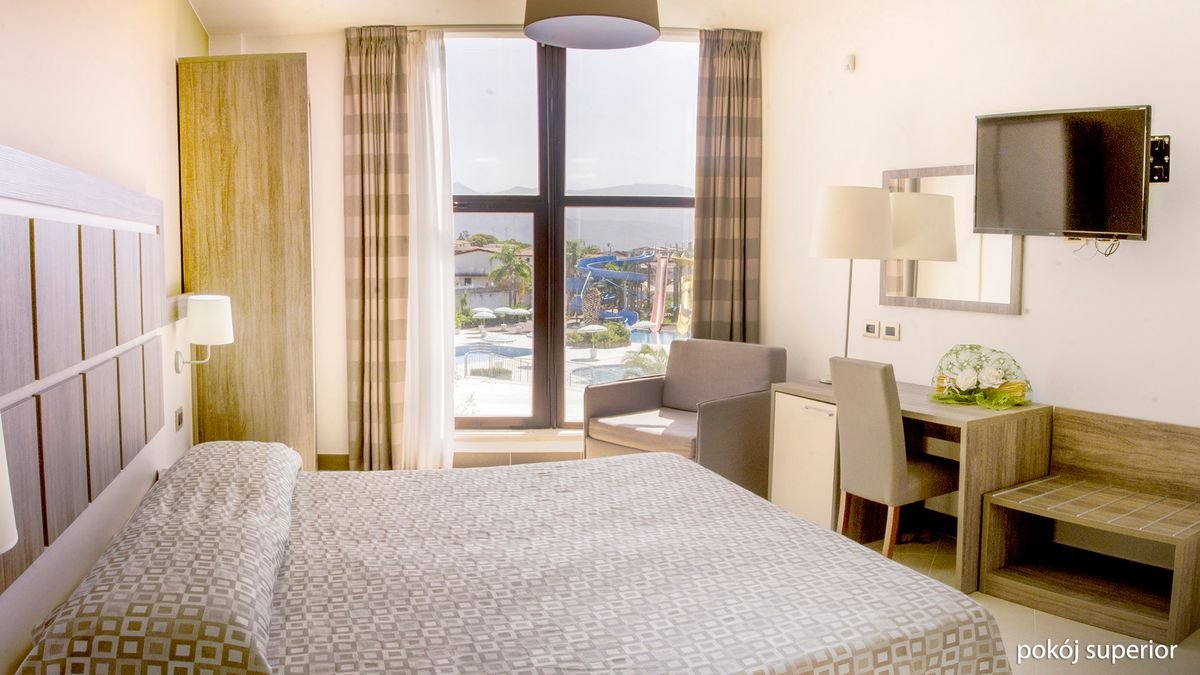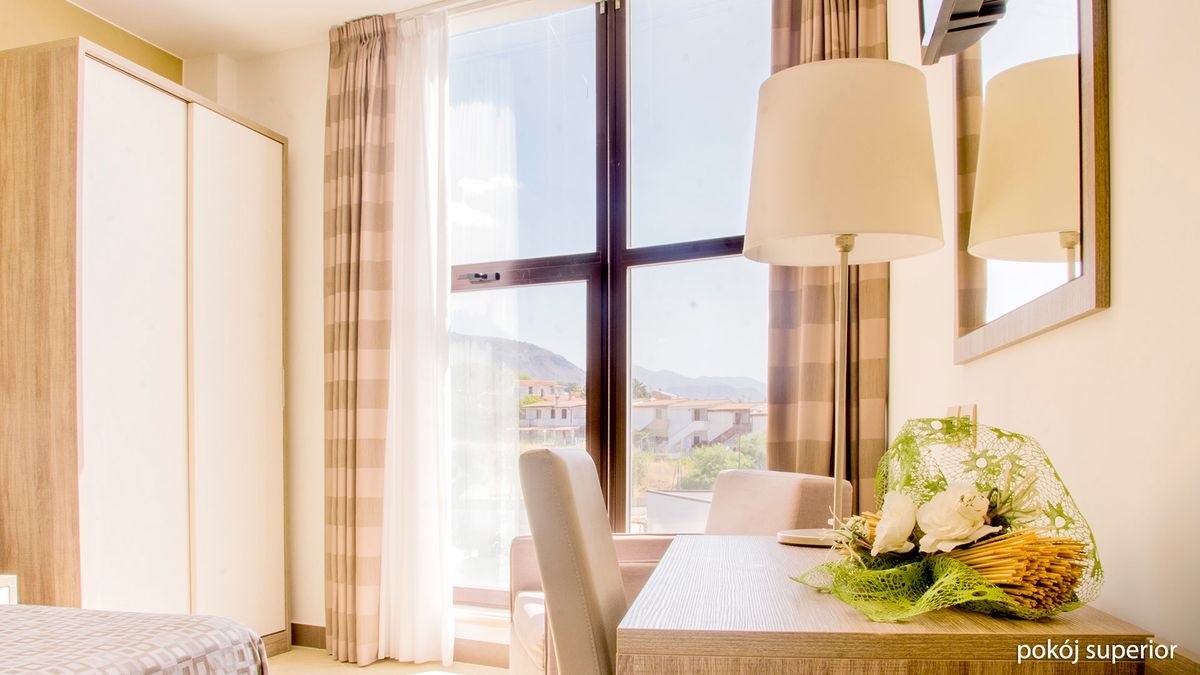 superior: 2-os. (możliwość 2 dostawek), ok. 30 m², wyremontowany, indywidualnie sterowana klimatyzacja, łazienka (prysznic, wc; suszarka), telewizja satelitarna, telefon, lodówka; bezpłatne łóżeczko dla dziecka do lat 2 na zamówienie przed przyjazdem.