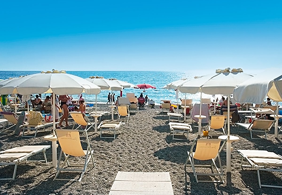 publiczna, wydzielony odcinek dla Gości hotelu, żwirkowo-piaszczysta, ciemny piasek, zejście do morza żwirkowo-kamieniste, zalecane obuwie ochronne, ok. 2,2 km od hotelu, bezpłatny bus hotelowy do plaży kilka razy dziennie (połowa czerwca – połowa września), bezpłatne parasole i leżaki.