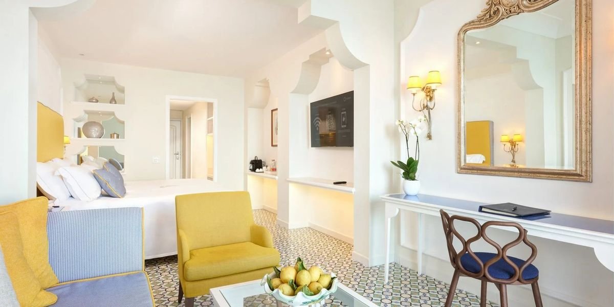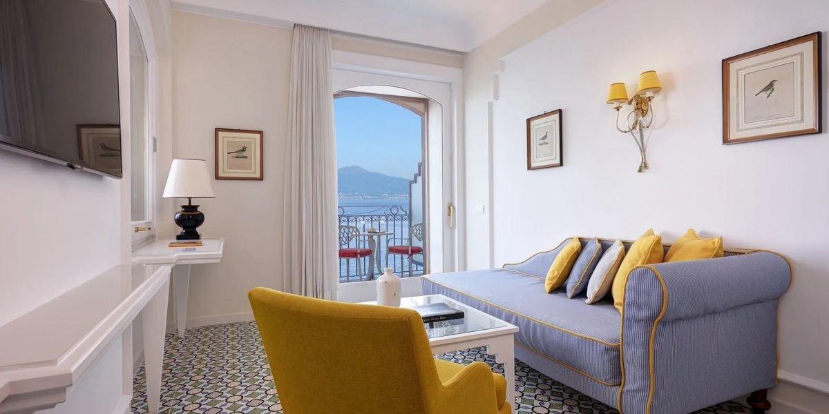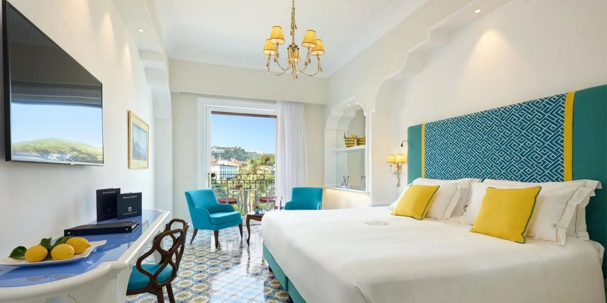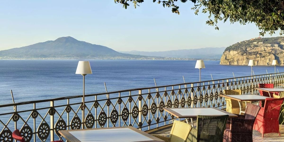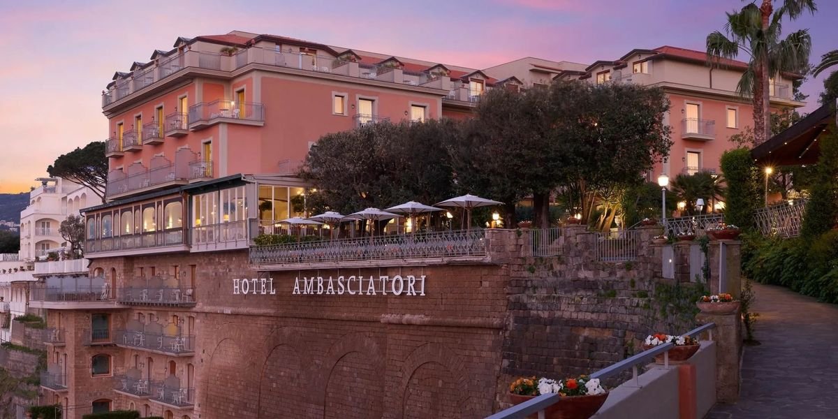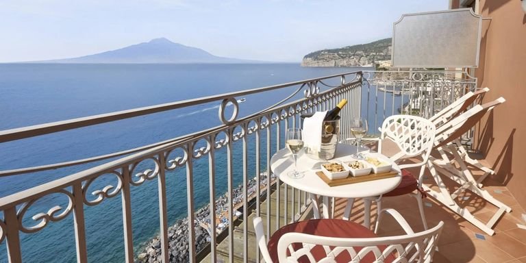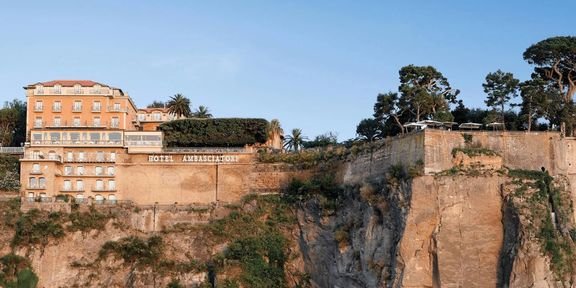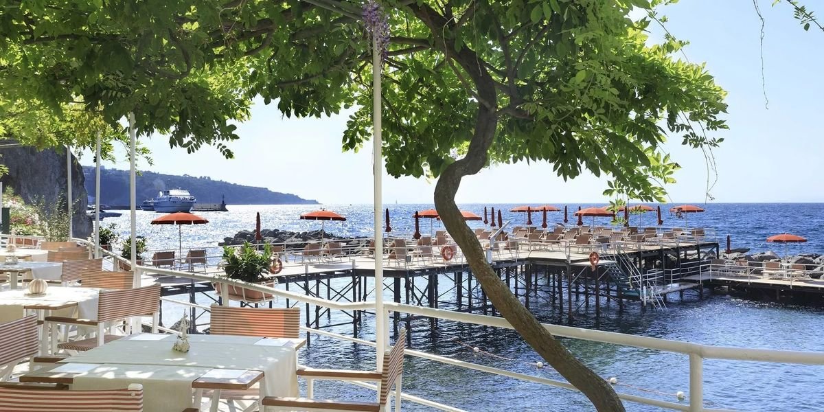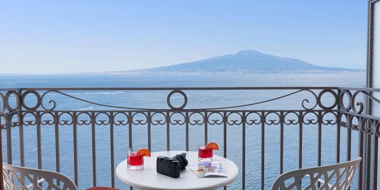 Marzysz o porannym cappuccino z widokiem na Wezuwiusz? W Grand Hotel Ambasciatori to codzienność! Ten elegancki hotel położony jest na skraju klifu, z którego windą zjedziesz prosto na prywatny pomost z leżakami nad czystym morzem. Czekają tu na Ciebie 3 restauracje, 2 bary oraz pokoje, w których przestrzeń i styl idą w parze z bajecznymi widokami. A gdy zatęsknisz za atmosferą miasteczka – centrum Sorrento jest zaledwie kilkanaście minut spacerem.