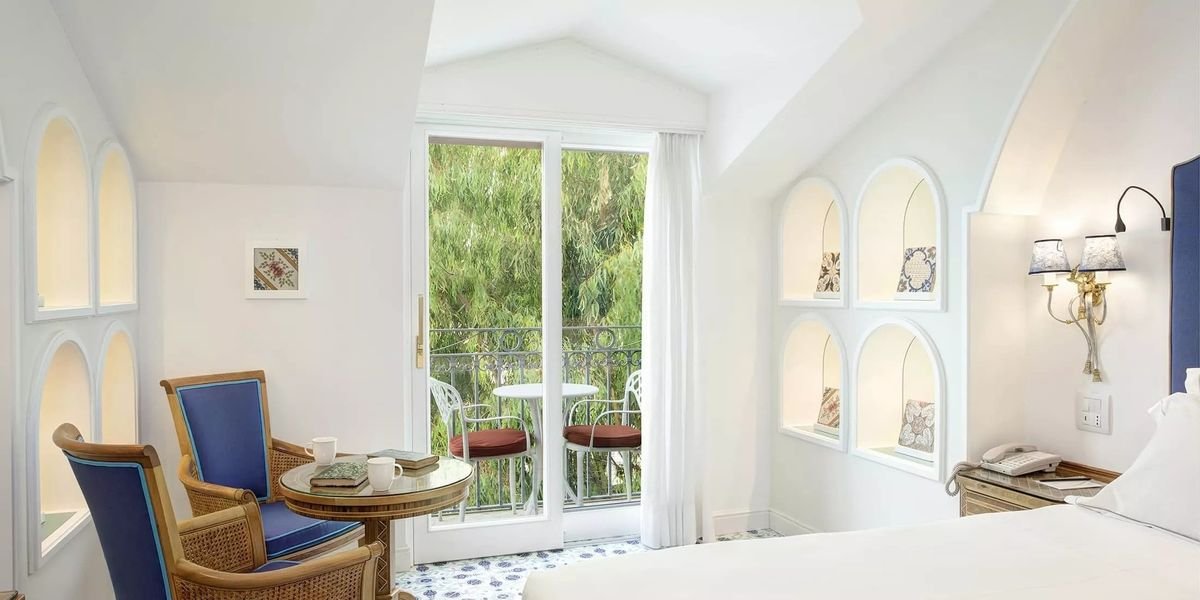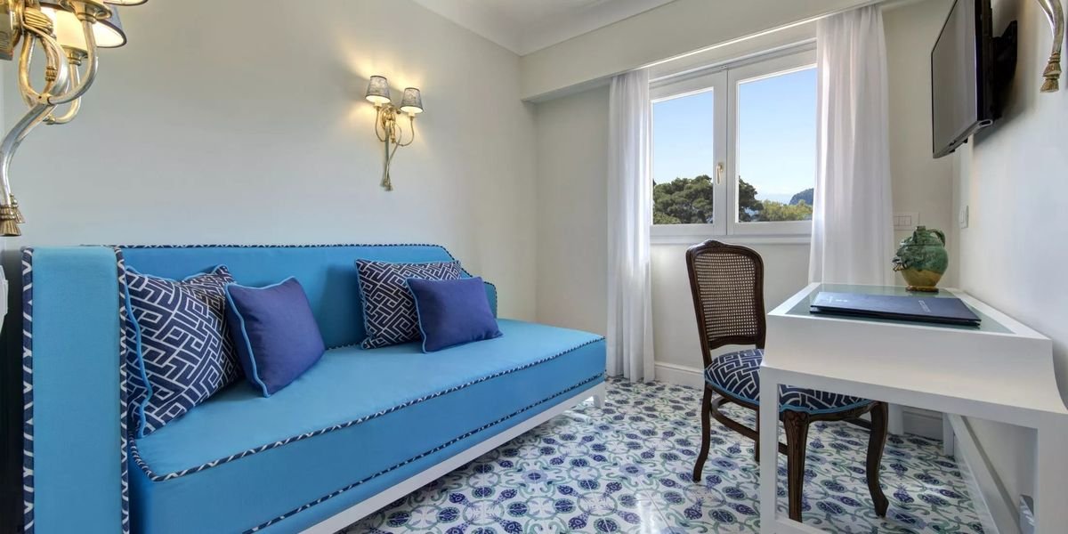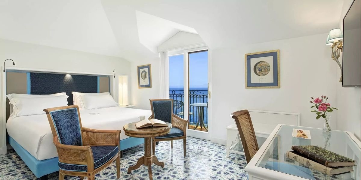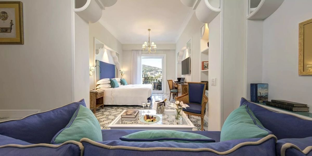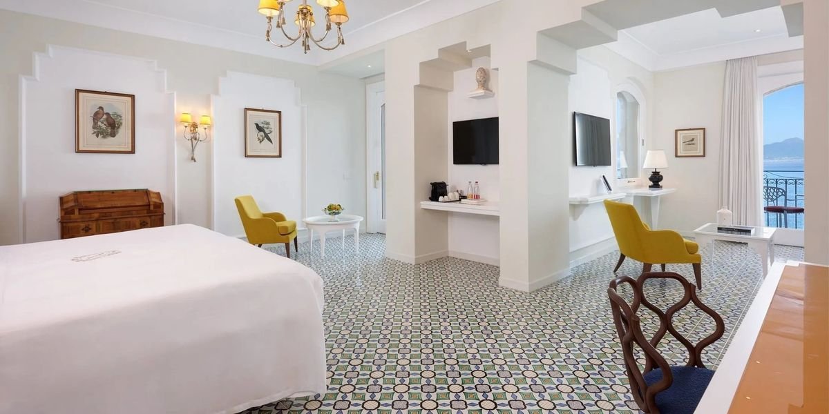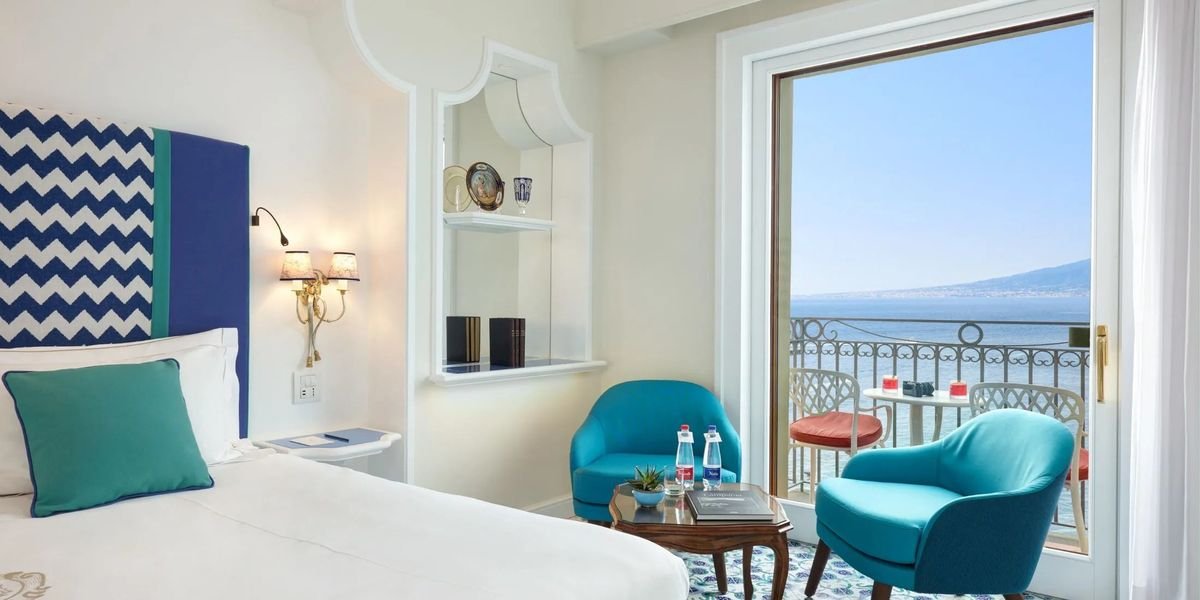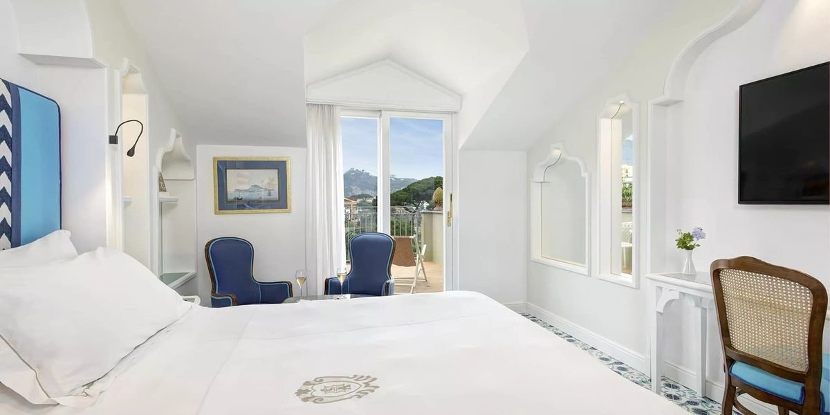 Marzysz o porannym cappuccino z widokiem na Wezuwiusz? W Grand Hotel Ambasciatori to codzienność! Ten elegancki hotel położony jest na skraju klifu, z którego windą zjedziesz prosto na prywatny pomost z leżakami nad czystym morzem. Czekają tu na Ciebie 3 restauracje, 2 bary oraz pokoje, w których przestrzeń i styl idą w parze z bajecznymi widokami. A gdy zatęsknisz za atmosferą miasteczka – centrum Sorrento jest zaledwie kilkanaście minut spacerem.