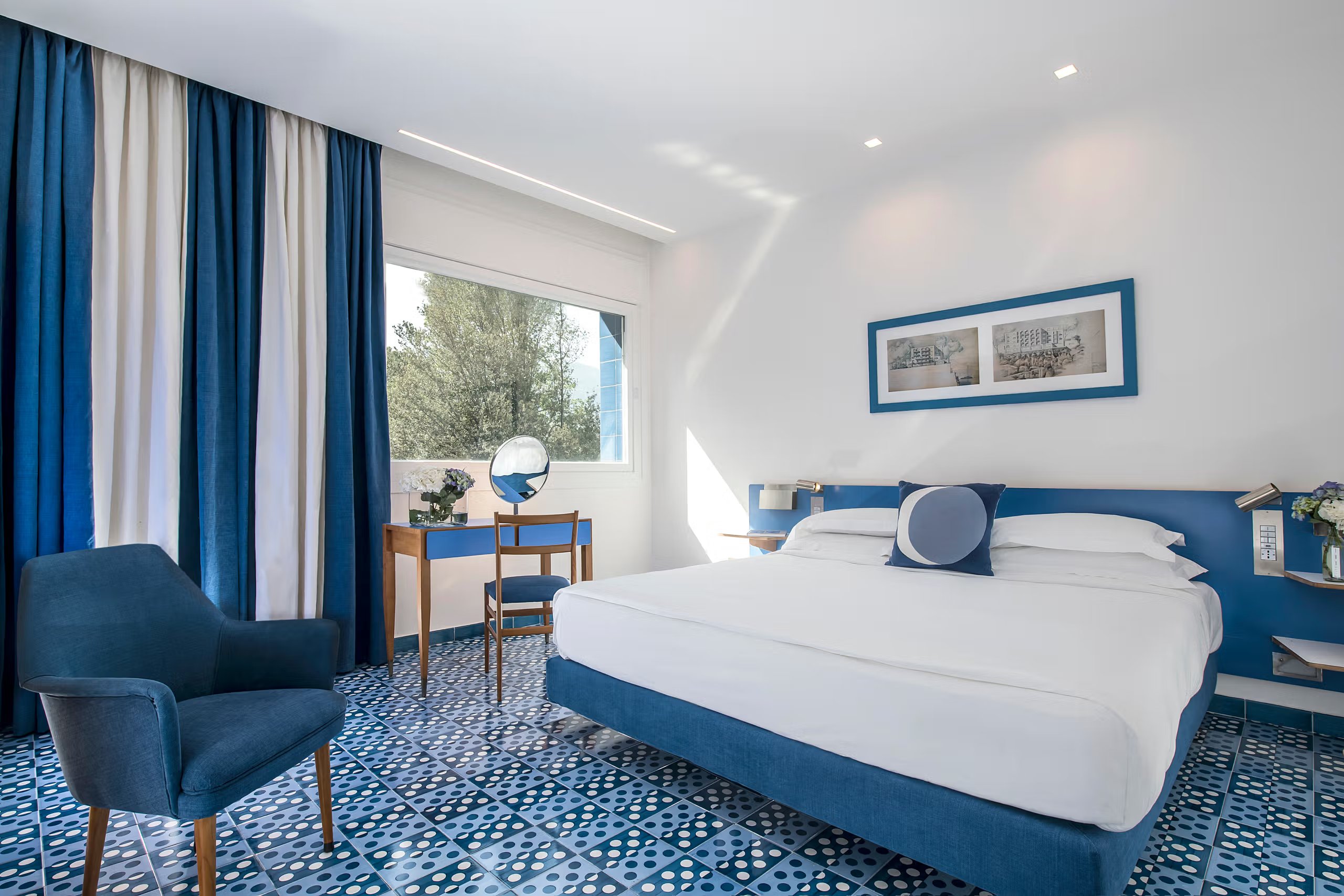 Położony na malowniczym klifie z imponującym widokiem na Zatokę Neapolitańską, jest prawdziwą ikoną Sorrento, gdzie włoska elegancja harmonijnie łączy się z wyjątkowym dizajnem. Zaprojektowany przez słynnego architekta Gio Pontiego, zachwyca jasnymi wnętrzami, oryginalnymi detalami i ponadczasowym stylem, który idealnie współgra z naturalnym pięknem wybrzeża. To miejsce, w którym możesz zanurzyć się w luksusowej atmosferze, odpocząć wśród śródziemnomorskiej roślinności, spędzać czas na hotelowej plaży i odkrywać smaki Kampanii. Idealny wybór dla osób szukających wyjątkowego stylu, wygody i niepowtarzalnego klimatu włoskiego wybrzeża.