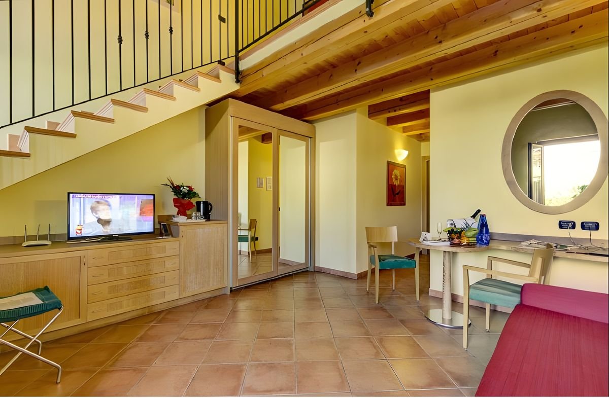 To miejsce stworzone do doskonałej zabawy i wypoczynku w gronie rodziny, czemu sprzyjają liczne udogodnienia i atrakcje oferowane przez hotel. Jeśli masz w domu zwierzaka, jego również możesz zabrać ze sobą na urlop – tu Wasze pupile są mile widziane! Na miejscu do dyspozycji są 3 baseny, brodzik i plac zabaw dla dzieciaków ze zjeżdżalnią, huśtawką i trampolinami oraz obiekty sportowe, a rozrywkę Gościom w każdym wieku zapewnią animacje prowadzone przez zespół profesjonalnych animatorów. Miłośnikom pięknych widoków polecamy wybrać się na spacer po okolicy, której obowiązkowym punktem jest słynne i piękne Jezioro Garda otoczone alpejskimi szczytami – jeśli nie lubisz spacerować, do centrum miejscowości możesz dojechać hotelowym busem.