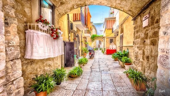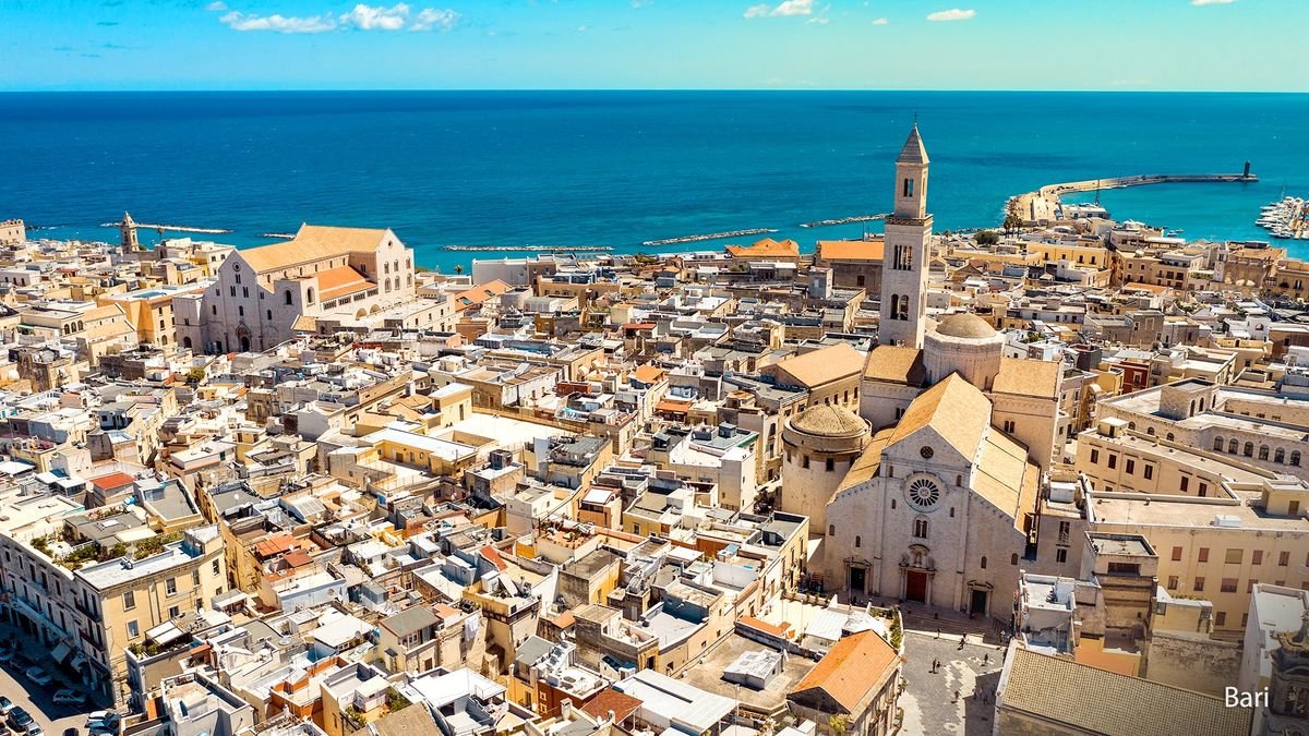 Zbiórka uczestników na lotnisku. Przelot do Bari, transfer do hotelu. Zakwaterowanie, czas wolny. Kolacja, nocleg.