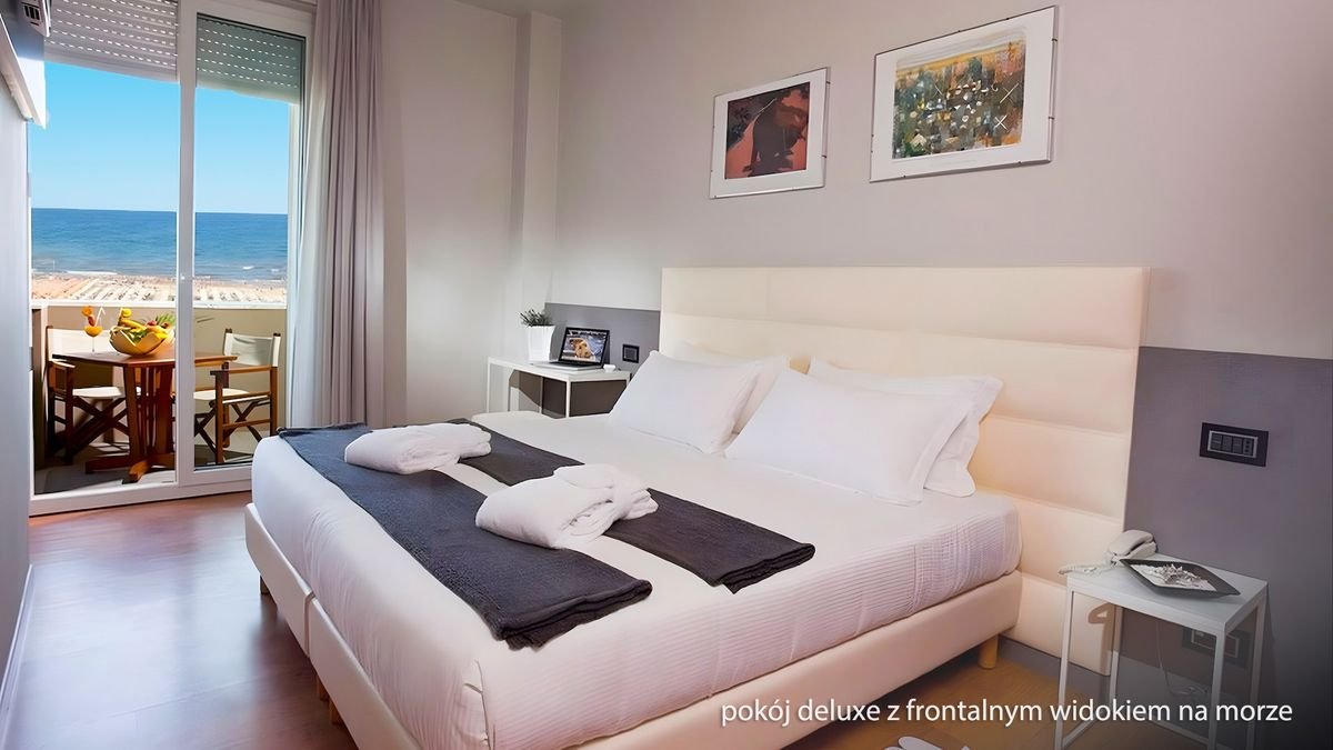 Położony tuż przy pięknej piaszczystej plaży, w jednym z najpopularniejszych włoskich kurortów i blisko centrum Rimini – to idealne miejsce na wakacyjny odpoczynek! Goście uwielbiają relaksować się w basenie z podgrzewaną wodą morską lub w profesjonalnym centrum spa z bogatą ofertą zabiegową. Hotelowa restauracja serwuje znakomite włoskie potrawy oraz dania kuchni międzynarodowej, a komfortowe i przytulne pokoje zapewnią spokój po całym dniu wrażeń.