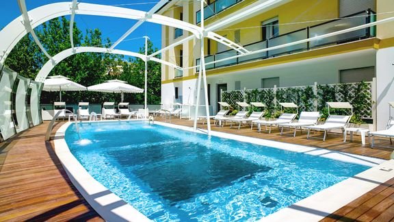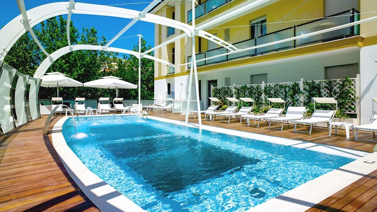 Marzy Ci się błogi wypoczynek nad ciepłym Adriatykiem? A może przejażdżki rowerowe i wieczorne spacery po promenadzie? Świetnie trafiłeś, tutaj znajdziesz nie tylko moc nadmorskich atrakcji, ale także komfortowe warunki do wypoczynku: przestronne pokoje, kameralny basen, smaczną włoską kuchnię i wakacyjną atmosferę. Położony w sercu tętniącego życiem Riccione, zaledwie kilka kroków od piaszczystej plaży, oferuje idealne warunki do wypoczynku nad morzem, zarówno dla par, jak i rodzin z dziećmi.