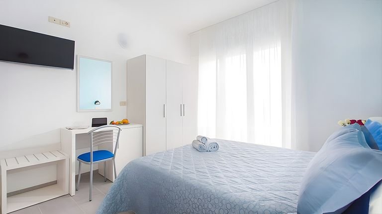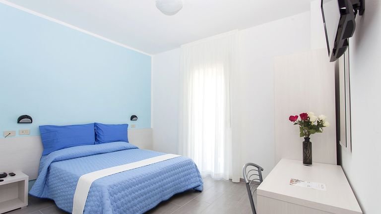 Czas na urlop we Włoszech, stolicy pizzy, makaronu i pysznych słodkości! Wystarczy przejść przez ulicę, żeby cieszyć się tym, co w Rimini najlepsze – piękną, piaszczystą plażą i przyjemną morską wodą. To także doskonała baza wypadowa do odkrywania okolicznych atrakcji, takich jak park rozrywki Mirabilandia, czy malownicze San Marino, jedno z najmniejszych państw na świecie. Goście chwalą miłą obsługę i kameralną atmosferę, dzięki której można się tu poczuć jak w domu.