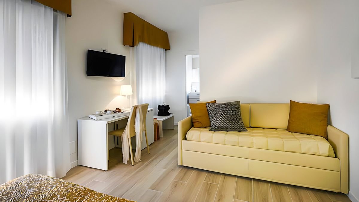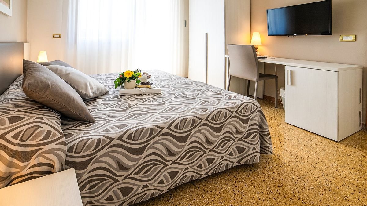 Położony zaledwie kilka kroków od szerokiej, piaszczystej plaży jest idealną propozycją dla tych, którzy marzą o beztroskim wypoczynku nad Adriatykiem. Przyjazny rodzinom, znany jest ze swobodnej atmosfery, włoskiej gościnności i doskonałej lokalizacji – znajduje się w spokojnej okolicy, a jednocześnie blisko tętniącego życiem centrum Bibione. Zjedz pyszne śniadanie w hotelowej restauracji, zrelaksuj się przy basenie na dachu z pięknym widokiem, a wieczorem odpocznij w komfortowym pokoju wyposażonym we wszystkie niezbędne wygody – tutaj czeka na Ciebie beztroski wypoczynek w przyjemnym, wakacyjnym rytmie.