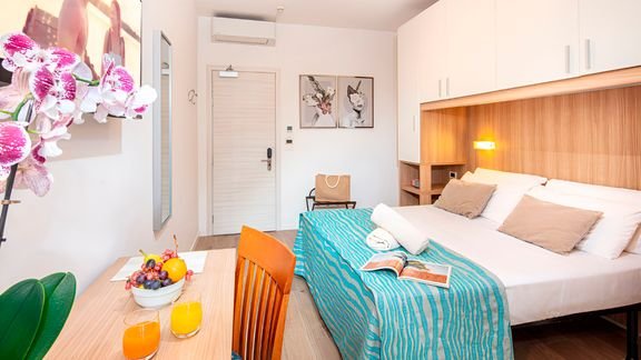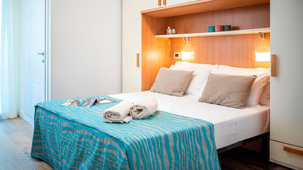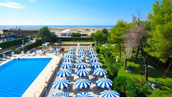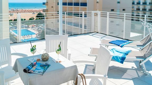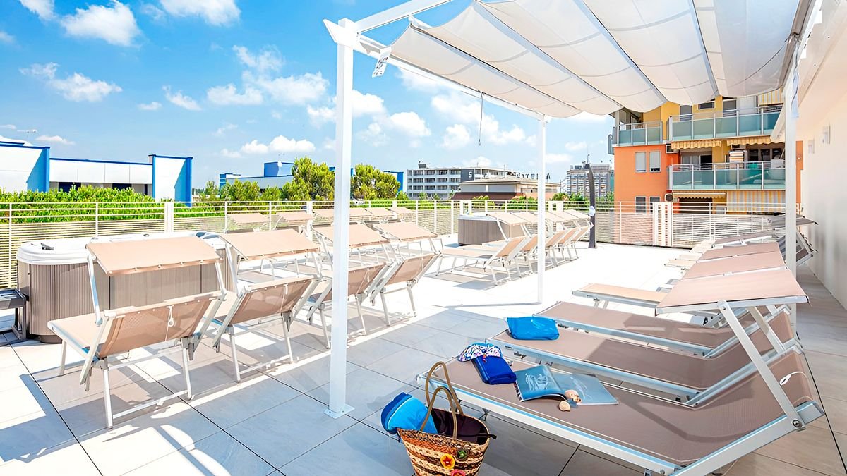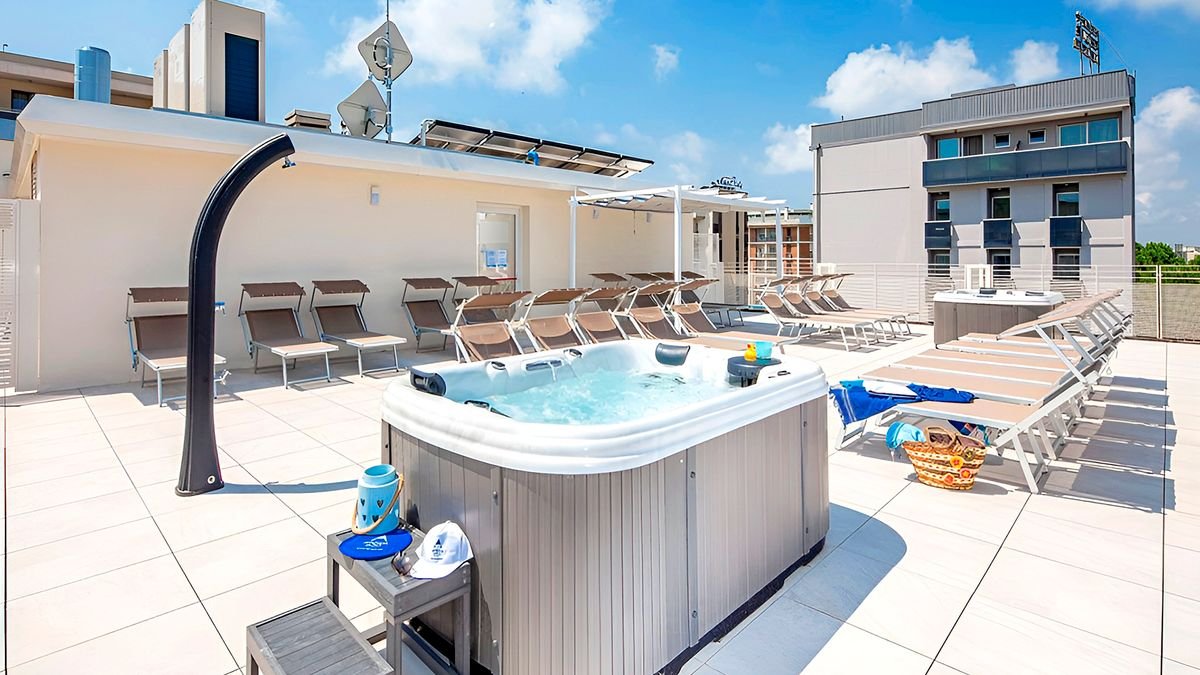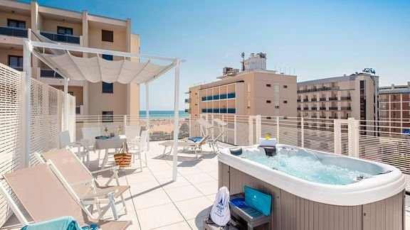 Niedaleko złocistej plaży Bibione kryje się miejsce, gdzie każdy detal zaprasza do chwili pełnej relaksu. Jasne wnętrza emanują ciepłem i stylem, tworząc azyl idealny na rodzinne przygody i romantyczne chwile. Wyjątkowe smaki odkryjesz na talerzu – świeże składniki zamienione są w prawdziwe, aromatyczne przysmaki. Po dniu pełnym słońca i morskich kąpieli czeka tu na Ciebie taras z 2 jacuzzi, na którym łatwo zatracić poczucie czasu. Goście mogą także skorzystać z części atrakcji sąsiedniego hotelu Palace, w tym z 2 basenów i placu zabaw, co sprawia, że jest idealny dla rodzin z dziećmi!