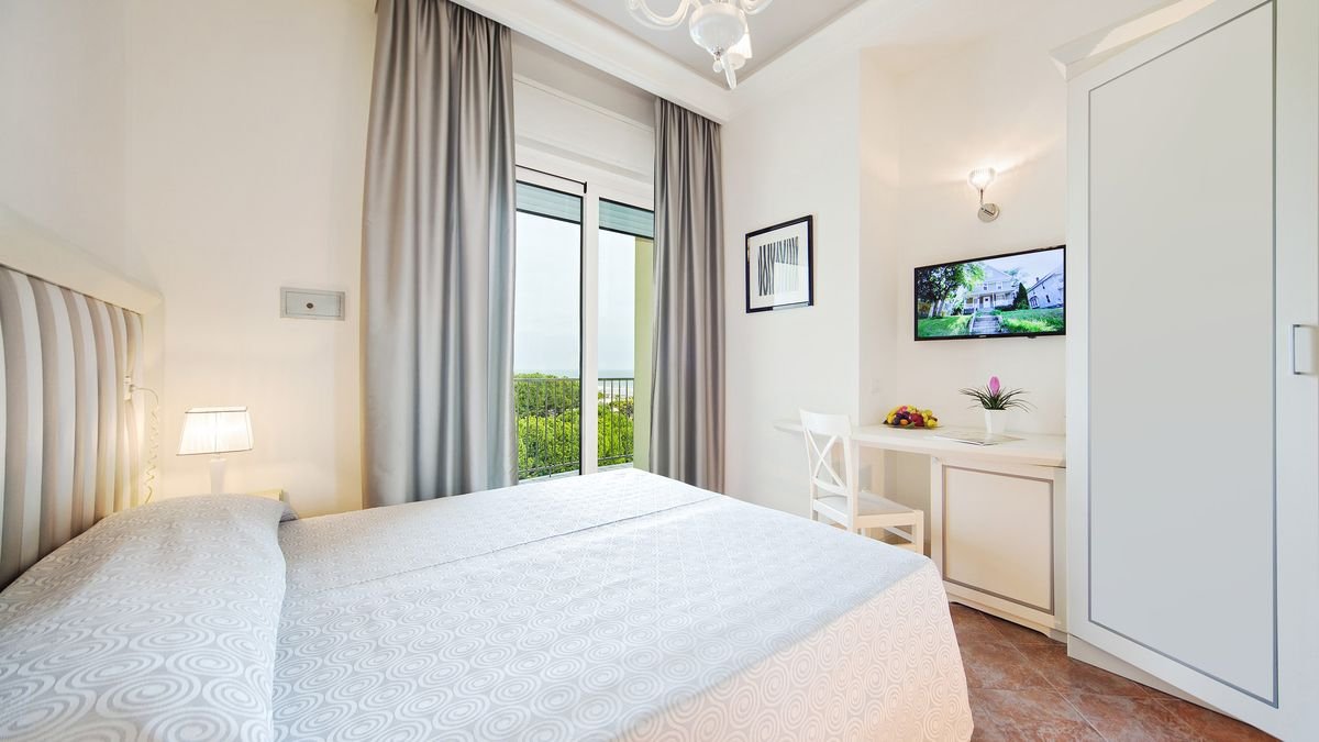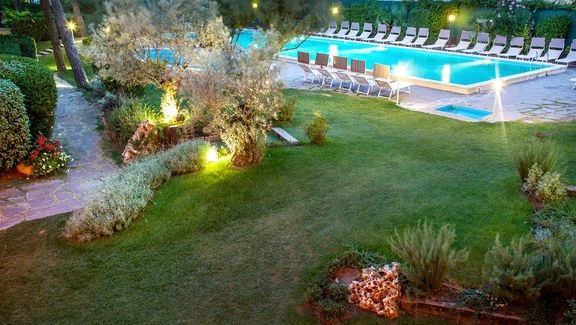 czterogwiazdkowy, zbudowany w 1962 r., całkowicie odnowiony w 2017 r., 83 pokoje, 1 budynek, 5 pięter, winda, przestronne lobby, elegancka, całodobowa recepcja, restauracja – dania w formie bufetu i à la carte, obsługa kelnerska, kuchnia włoska i lokalna, dostępne foteliki i menu dla dzieci, dania wegetariańskie i dieta bezglutenowa, 2 bary, w tym przy basenie; przechowalnia bagażu; taras, ogród z drzewami piniowymi; bezpłatny internet bezprzewodowy; za opłatą: parking (ok. 10 EUR/dzień), pralnia; akceptowane małe zwierzęta domowe (za opłatą: ok. 10 EUR/dzień); akceptowane karty kredytowe: Visa, MasterCard, American Express.