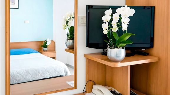 Komfortowy i kameralny, od kilku pokoleń prowadzony przez tę samą rodzinę, jest miejscem, w którym można poczuć się jak w domu! Położony tuż przy piaszczystej plaży i promenadzie, a jednocześnie niedaleko tętniącego życiem centrum Rimini z licznymi restauracjami, barami i klubami nocnymi, do którego można łatwo dostać się autobusem, pozwoli zarówno na relaksujący wypoczynek, jak i świetną zabawę! Goście doceniają piękne widoki na wybrzeże i przyjazną obsługę, a do ich dyspozycji na miejscu czeka m.in. restauracja serwująca lokalne i międzynarodowe specjały, bar, gdzie można napić się aromatycznej kawy lub koktajlu oraz schludne, jasne i doskonale wyposażone pokoje.
