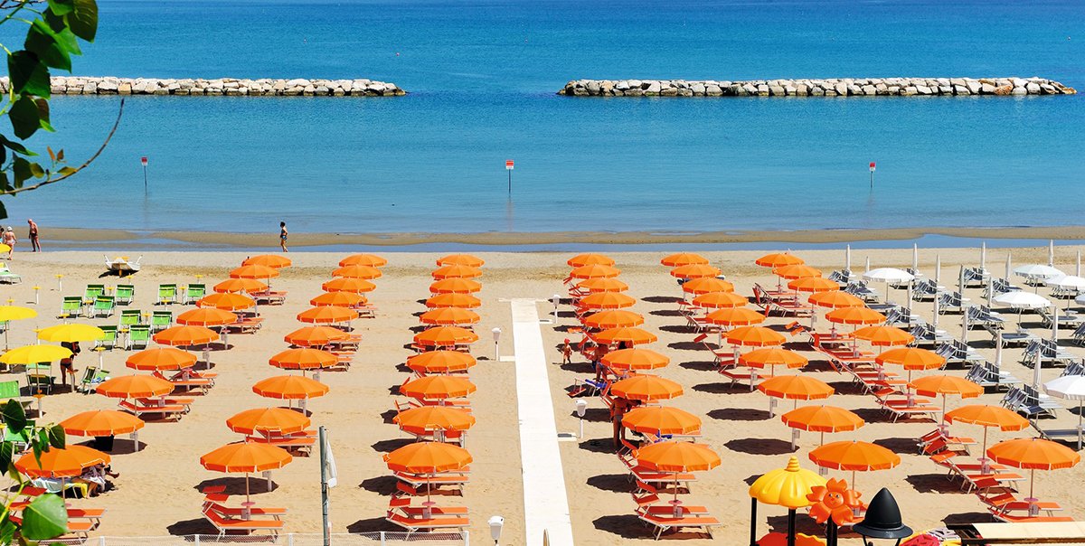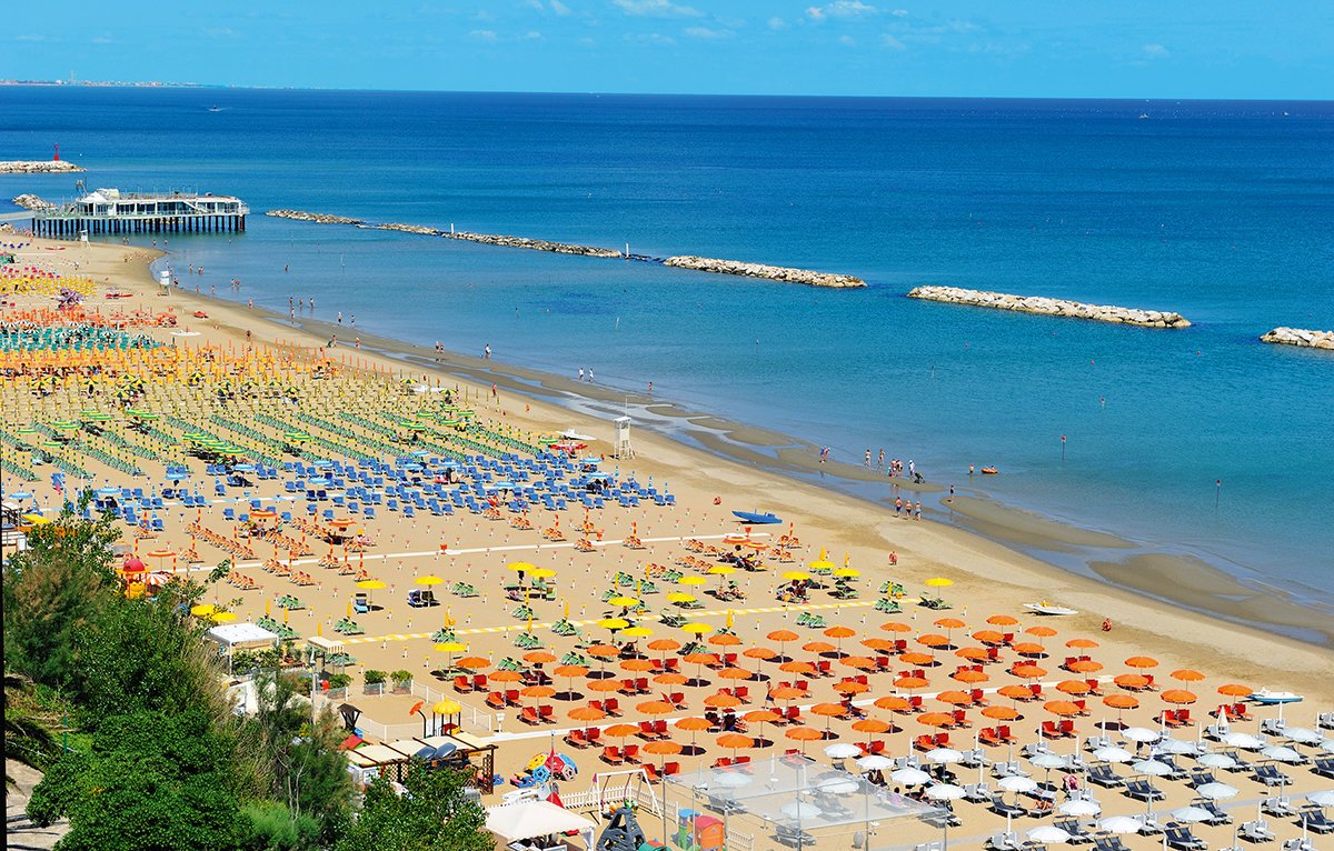 plaża nr 31, hotelowa, piaszczysta, łagodne zejście do morza, wyróżniona certyfikatem Błękitna Flaga, ok. 100 m od hotelu, dojście przez park, parasole i leżaki płatne (ok. 15 EUR/os./dzień, cena uzależniona od położenia oraz terminu); najbliższa plaża publiczna: ok. 200 m, ręczniki płatne (ok. 3 EUR), bez serwisu plażowego.