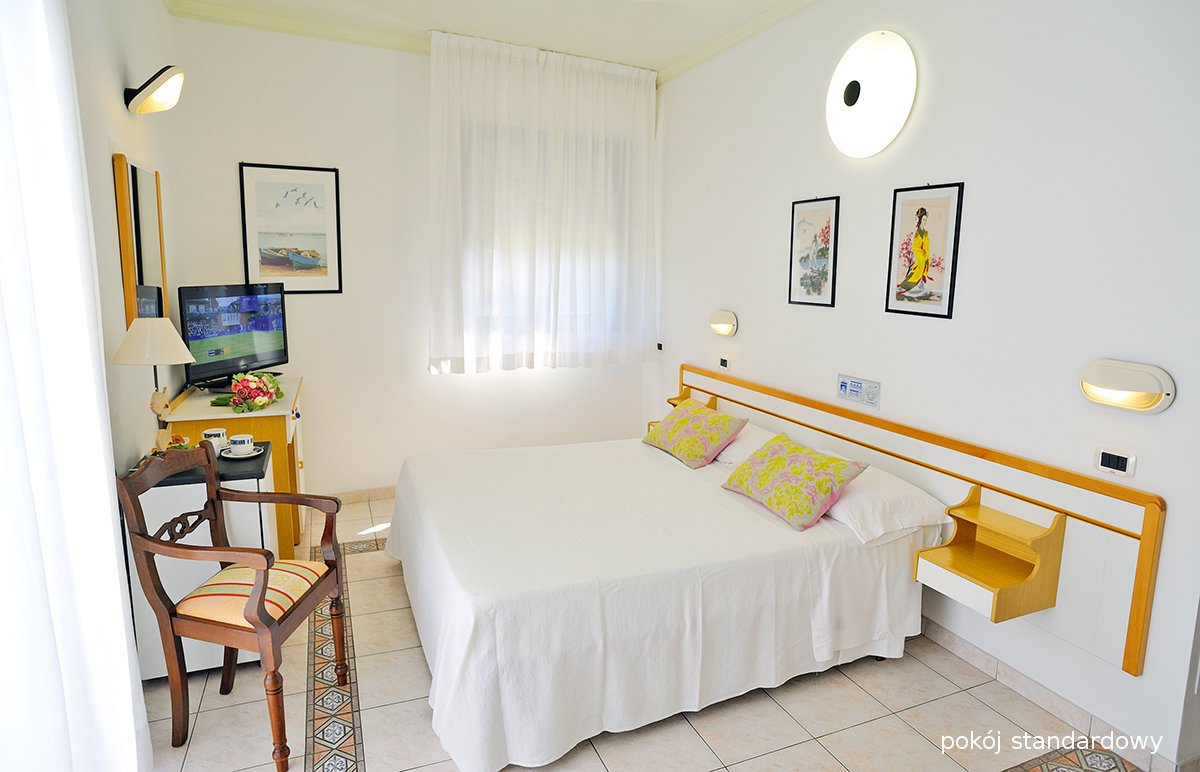 standardowy : 2-os. (możliwość 1 lub 2 dostawek), ok. 15 m², klimatyzowany, łazienka (prysznic, wc), internet bezprzewodowy, telewizja satelitarna, telefon, sejf; za opłatą: minibar; balkon; rodzinny: : 2-os (możliwość 1 lub 2 dostawek – łóżko piętrowe), ok. 30 m², wyposażenie jak w pokoju standardowym; pokój rodzinny za dopłatą.