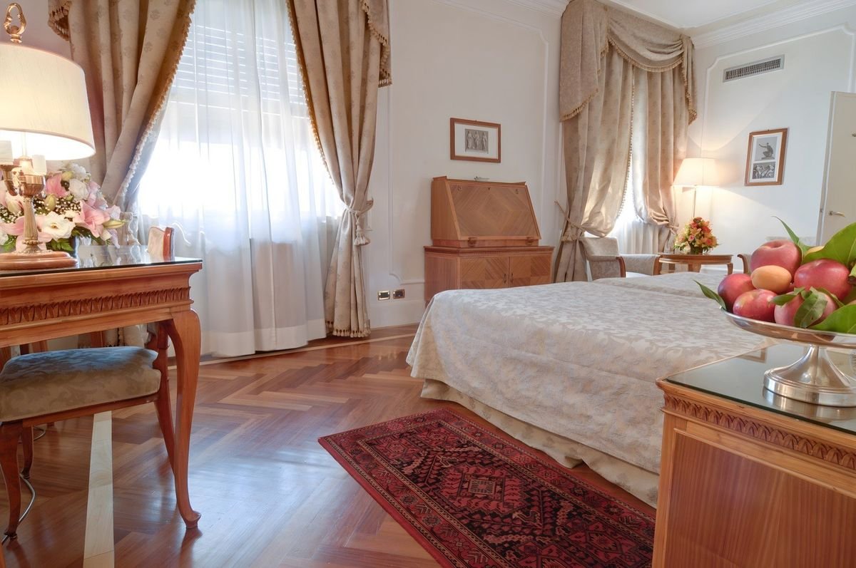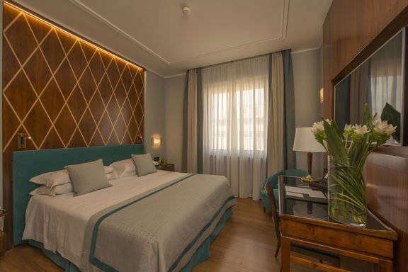 Położony na jednym z siedmiu wzgórz Rzymu – Eskwilin, w odległości krótkiego spaceru od najważniejszych atrakcji turystycznych, jak Koloseum czy Forum Romanum, zachwyca panoramicznym widokiem na całe Wieczne Miasto. Zaprojektowany przez architekta Mario Loreti w 1938 r., wyróżnia się autentycznym stylem art déco i oryginalnym wystrojem z lat 30. We wnętrzu dominują luksusowe materiały – marmur i drewno, hol zdobią popiersia rzymskich cesarzy, a ściany imponujące mozaiki. Goście chwalą nie tylko dobry poziom serwisu, eleganckie pokoje oraz wykwintną kuchnię, ale także lokalizację hotelu oraz bliskość stacji metra i dworca Termini, które pozwalają wygodnie zaplanować zwiedzanie.