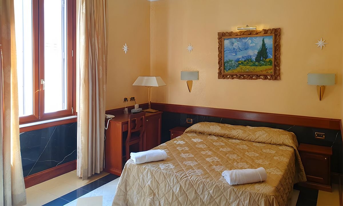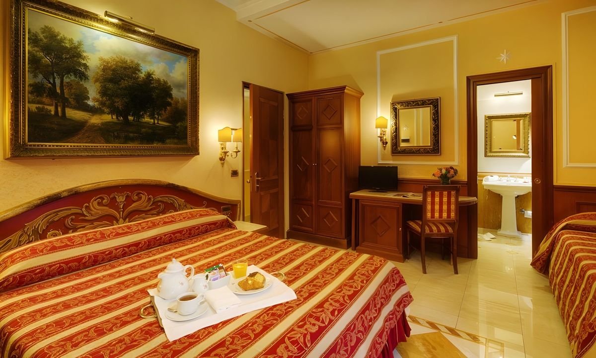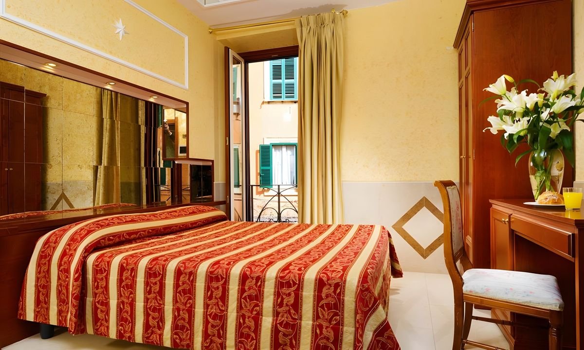 Szukasz wyjątkowego miejsca na pobyt w Rzymie? Mamy dla Ciebie doskonałą propozycję! Kameralny i elegancki hotel zaaranżowany w zabytkowym, XIX-wiecznym budynku w samym sercu miasta, skąd od najważniejszych atrakcji włoskiej stolicy, takich jak Fontanna di Trevi czy Forum Romanum będzie dzielił Cię tylko krótki spacer. Odpocznij w przytulnych, gustownie urządzonych wnętrzach, zrelaksuj się w komfortowym pokoju ze wszystkimi potrzebnymi wygodami, a po dniu spędzonym na zwiedzaniu, odpręż się na tarasie z widokiem na urokliwe, tętniące życiem uliczki.
