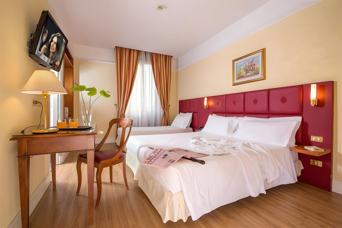 Marzy Ci się wypoczynek w Wiecznym Mieście? Spędź go w hotelu, gdzie nowoczesny komfort spotyka się z historycznym urokiem miasta tuż przy samej rzece Tyber. Zwiedż każdy zakątek i odkryj miejsce pełne zabytków i pysznych lokalnych dań, których musisz spróbować. Eleganckie wnętrza zaprojetkowane w ciepłych barwach pozwolą Ci na odpoczynek po całym dniu aktywności, a piękne widoki na okolicę zobaczysz z tarasu na dachu – przyjedż i sam się przekonaj!
