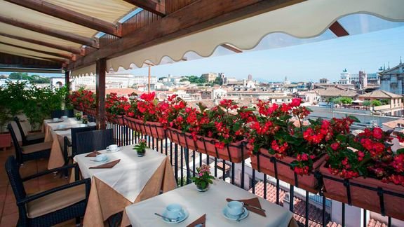 Położony w sercu historycznego Rzymu, bardzo blisko atrakcji turystycznych, jest idealną propozycją dla tych, którzy zwiedzanie miasta stawiają na pierwszym miejscu. Zaledwie krótki spacer dzieli od słynnej Fontanny di Trevi czy Schodów Hiszpańskich, a piękno stolicy zauważalne jest również z hotelowego tarasu, skąd można podziwiać fantastyczne zabytki Rzymu podczas śniadania czy odpoczynku przy basenie. Wyróżniające się niezwykłą elegancją pokoje są klimatyzowane i zapewniają pełen komfort wypoczynku, a wystrój utrzymany w klasycznym stylu spodoba się nie tylko amatorom gustownych wnętrz.