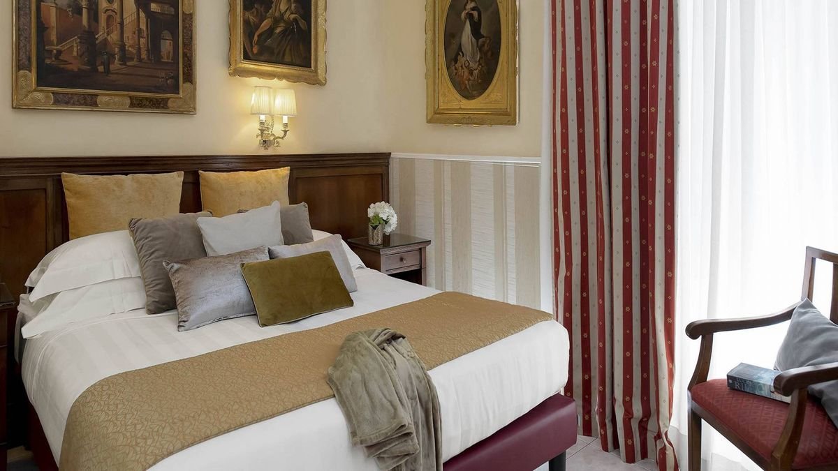 Pyszna pizza, wyjątkowo smaczna kawa, której aromat czuć spacerując wąskimi uliczkami wśród spektakularnej architektury oraz takie perełki jak Fontanna di Trevi, Koloseum czy Forum Romanum – skuś się na city break, który na długo zapadnie Ci w pamięć! Wybierz klimatyczny, kameralny hotel i zatrzymaj się w jednym z 33 pokoi – każdy z nich zaprojektowany jest w klasycznym, włoskim stylu. Zachwycą Cię piękne obrazy w bogato zdobionych ramach oraz wnętrza urządzone z dbałością o każdy szczegół. Lokalizacja to niewątpliwy atut tego miejsca, bez trudu dotrzesz stąd do najważniejszych atrakcji stolicy Włoch. Koniecznie odwiedź też taras na dachu, odpoczniesz tu po dniu pełnym zwiedzania wśród soczyście zielonej roślinności.