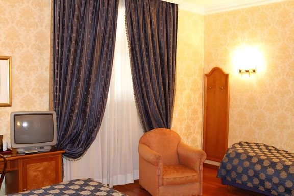 Położony w sercu wiecznego miasta, jest doskonałą propozycją dla wszystkich podróżujących zarówno w celach turystycznych, jak i biznesowych. Dzięki doskonałej lokalizacji, do takich atrakcji turystycznych, jak Forum Romanum, fontanna di Trevi, Panteon czy Koloseum, dotrzesz bez trudu dłuższym spacerem. Hotel sprawdzi się także jako baza wypadowa do poznania nocnego życia miasta. Po dniu pełnym atrakcji koniecznie wybierz się do baru z tarasem na dachu, skąd roztaczają się fantastyczne widoki na historyczne centrum Rzymu! Całość udanego wypoczynku dopełni miła i pomocna obsługa, która dokłada wszelkich starań, aby Twój pobyt w tym miejscu był niezapomniany.