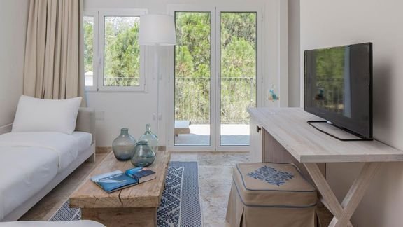 junior suite: 2-os. (możliwość 1 dostawki), ok. 33 m², indywidualnie sterowana klimatyzacja, łazienka (prysznic, bidet; suszarka, zestaw kosmetyków, szlafrok i kapcie), osobne wc, telefon, telewizja satelitarna, internet bezprzewodowy, sejf, zestaw do kawy/herbaty, minibar (płatny wg konsumpcji); balkon (stolik i krzesełka), widok na park; boczny widok na morze i widok na morze za dopłatą.