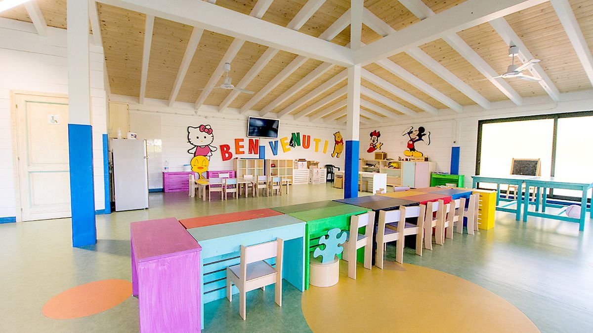duży basen, słodka woda, ok. 2500 m², nieregularny kształt, brodzik dla dzieci, słodka woda, ok. 500 m², basen z hydromasażem, ok. 60 m², przy basenach bezpłatne parasole i leżaki, ręczniki płatne (ok. 3 EUR/os./dzień, kaucja: ok. 20 EUR/os.; każda wymiana dodatkowo płatna); centrum fitness, tenis stołowy, kilka wielofunkcyjnych boisk, m.in. do piłki nożnej, koszykówki i tenisa (wymagana rezerwacja, oświetlenie dodatkowo płatne); plac zabaw dla dzieci, miniklub (4-12 lat), amfiteatr La Marina, włoskie animacje dla dzieci i dorosłych: zajęcia sportowo-rekreacyjne i wieczorne programy rozrywkowe; za opłatą: windsurfing, nurkowanie (oferta zewnętrzna).