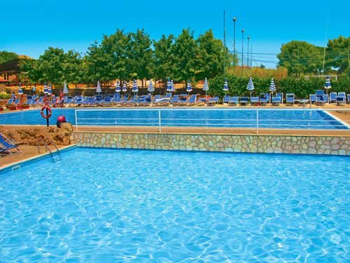 basen, wymagane czepki, kwadratowy kształt, słodka woda, ok. 300 m², gł. 1-2,8 m, mniejszy basen dla dzieci, słodka woda, ok. 120 m², gł. 0,7 m, przy basenie parasole i leżaki; 2 boiska wielofunkcyjne: (oświetlenie płatne: ok. 15 EUR/godz.) jeden do tenisa ziemnego i piłki nożnej, drugi do koszykówki i siatkówki, bule; plac zabaw dla dzieci, mini-klub (4-12 lat; płatny), dyskoteka, piano-bar, amfiteatr, animacje dla dorosłych i dzieci: aqua aerobic, zajęcia sportowe, kabaret, taniec.