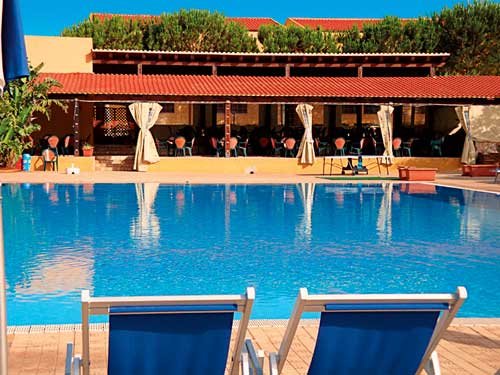 czterogwiazdkowy, zbudowany w 1999 r., odnawiany w 2005 i 2008 r., łącznie 314 pokoi i apartamentów, 6 jednopiętrowych budynków, przestronne i eleganckie lobby, całodobowa recepcja, duża restauracja podzielona na dwie sale: Aiace i Circe - dania w formie bufetu (czerwiec-sierpień) lub serwowane (poza sezonem), restauracja Calipso z tarasem - à la carte, obsługa kelnerska, dania z grilla, pizza; w restauracjach dostępne foteliki i menu dla dzieci, dania wegetariańskie; bar Briseide przy basenie; sala konferencyjna dla 300 osób, taras z widokiem na ogród; za opłatą: punkt internetowy (ok. 10 EUR/godz.), fryzjer; akceptowane karty kredytowe: Visa, MasterCard, American Express, Diners Club.