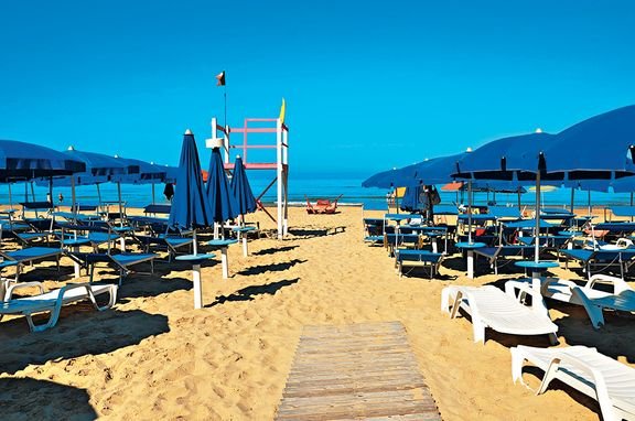 publiczna, długa i szeroka, piaszczysta, wydzielony odcinek hotelowy, ok. 800-1000 m od hotelu (zależnie od miejsca zakwaterowania), dojście przez teren hotelu i chodnikiem lub dojazd bezpłatnym busem hotelowym (termin i częstotliwość kursów określa hotel), płatne parasole i leżaki dostępne w ramach obowiązkowej karty klubowej (za leżaki w 1.-3. rzędzie pobierana jest dodatkowa opłata).