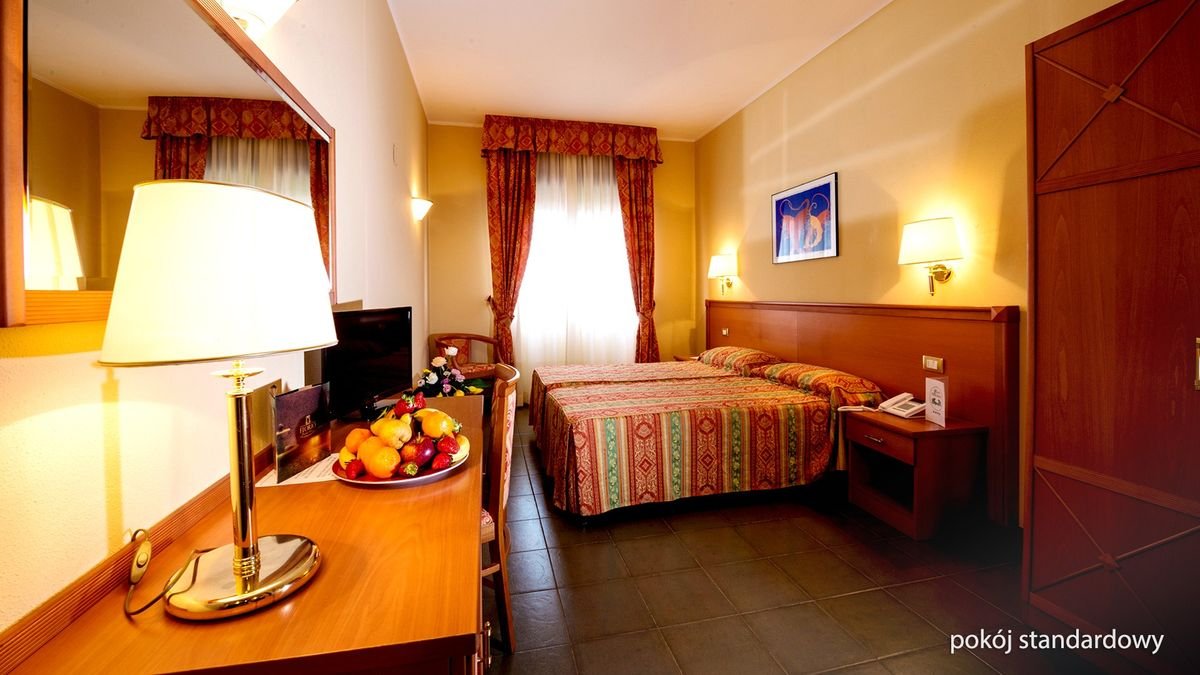•czterogwiazdkowy•180 pokoi, budynek główny i kilkanaście budynków bocznych, do 2 pięter•lobby•całodobowa recepcja•sala konferencyjna•ogród