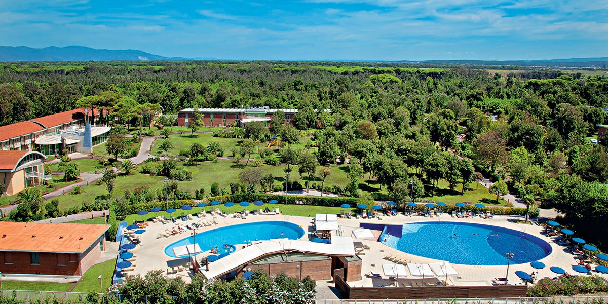 czterogwiazdkowy, 148 pokoi, 17 budynków, w tym główny, do 2 pięter, 6 wind, przestronne lobby, całodobowa recepcja z bezpłatnym sejfem, restauracja Le Ginestre – dania w formie bufetu i serwowane, kuchnia toskańska i śródziemnomorska, dostępne dania wegetariańskie i menu dla dzieci (na zapytanie), 2 bary, w tym jeden przy basenie, przechowalnia bagażu; centrum konferencyjne dla ok. 580 osób, ogród – park (ok. 5 hektarów), bezpłatny internet bezprzewodowy w miejscach ogólnodostępnych; za opłatą: opiekunka do dziecka, lekarz na wezwanie, pralnia, wypożyczalnia samochodów (oferta zewnętrzna); akceptowane karty kredytowe: Visa, MasterCard, American Express, Diners Club.