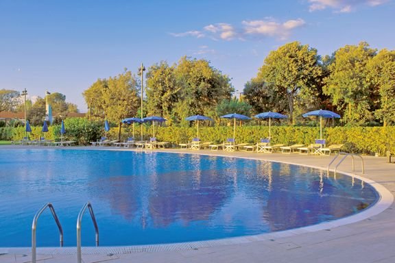 Wspaniały, ogromny zielony ogród - park z pachnącymi piniami, kwiatami i rozległymi trawnikami otacza kameralne budynki hotelowe i baseny. Idealne miejsce na oderwanie się od codzienności i spędzenie wakacji blisko natury. Tylko krótki spacer do piaszczystej, szerokiej plaży. Do dyspozycji Gości są eleganckie pokoje, korty tenisowe, a także centrum wellness z krytym basenem i bogatą ofertą zabiegów. Polecany na rodzinny wypoczynek i romantyczne wakacje we dwoje.