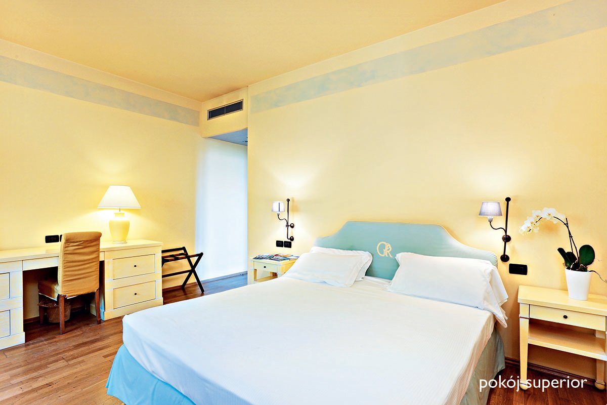 superior: 2-os. (możliwość 1 dostawki), ok. 15-18 m², elegancki, indywidualnie sterowana klimatyzacja, łazienka (wanna, wc; suszarka), internet bezprzewodowy, telewizja satelitarna, telefon; za opłatą: sejf, mini-bar; bezpłatne łóżeczko dla dziecka do 2 lat na zamówienie przed przyjazdem; część pokoi z balkonem; junior suite: 2-os. (możliwość 1 lub 2 dostawek dla dziecka), ok. 25-28 m², sypialnia i pokój dzienny (nie oddzielone drzwiami), wyposażenie jak w pokoju superior.