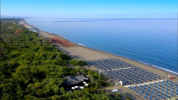 Położony wśród krzewów róż i śródziemnomorskiej roślinności, w pachnącej sosnami okolicy, zaprasza na słoneczne, spokojne wakacje. Świetnie zaaranżowane baseny w ogrodzie są doskonałe na orzeźwiające kąpiele – na miejscu basen zarezerwowany jedynie dla dorosłych, dzięki czemu można tu naprawdę dobrze się odprężyć! Atutem hotelu jest bliskość piaszczystej plaży, na której w wysokim sezonie można skorzystać z bezpłatnego serwisu plażowego. Goście doceniają również sympatyczną obsługę, a także świetne dania kuchni regionalnej w restauracjach.