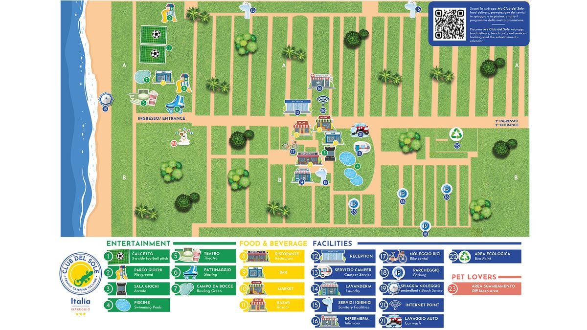 Rozległy, wakacyjny kompleks położny na wybrzeżu Toskanii, w odległości spaceru od piaszczystej plaży, jest doskonałą propozycją na urlop we włoskim stylu. Dobrze zaprojektowany, z 2 basenami oraz bogatym programem animacji idealnie sprawdzi się dla rodzin z dziećmi i osób ceniących swobodną, wakacyjną atmosferę. Praktycznie wyposażone domki mają 2 sypialnie, aneksy kuchenne i tarasy, mogą pomieścić nawet 5 osób. Malownicza okolica zachęca do aktywności na świeżym powietrzu, są tu ciekawe trasy rowerowe i piesze, warto wybrać się także do klimatycznego Viareggio z licznymi sklepami i restauracjami.