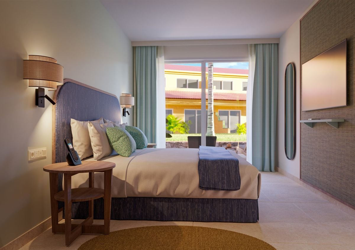 Poczuj pełen wakacyjny chill w eleganckim hotelu na Fuerteventurze! Zachwyca zadbanym ogrodem palmowym i subtelnym wystrojem wpisującym się w najnowsze trendy, dzięki połączeniu jasnych barw z drewnianymi elementami. Idealne miejsce na chwilę relaksu? Ładnie zaaranżowany basen pozwoli Ci odpocząć w ciągu dnia, aby oderwać się od codziennych trosk. Dzieci będą mogły cieszyć się różnorodnymi atrakcjami – od placu zabaw i animacji po miniklub, gdzie kreatywnie spędzą czas. Wieczorem czekają na Ciebie funkcjonalnie urządzone pokoje ze wszystkimi potrzebnymi udogodnieniami, zapewniające komfort i wypoczynek po całym dniu. Prezentowany materiał graficzny przedstawia wizualizację obiektu.