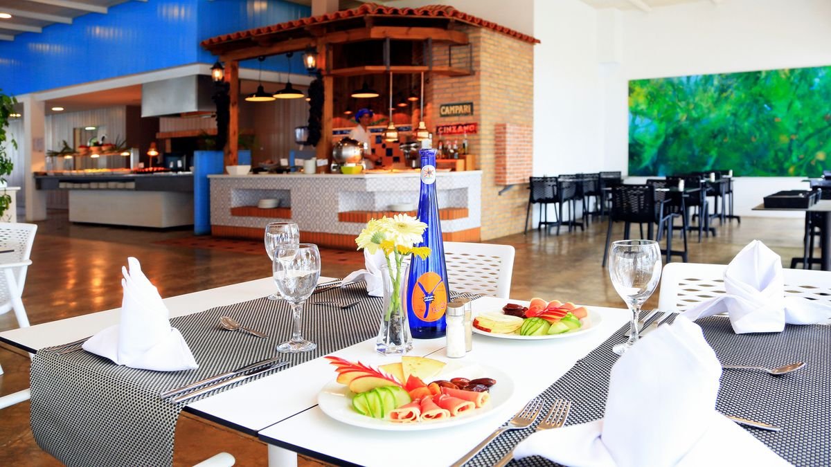 śniadanie (8.00-10.30), obiad (12.30-15.00) w formie bufetu w restauracji głównej, kolacja (18.30-20.30) w formie bufetu w restauracji głównej Lobos lub w restauracji Botanic Lounge; przekąski w wyznaczonych barach (15.00-18.00); napoje bezalkoholowe i lokalne napoje alkoholowe w wyznaczonych barach (11.00-23.00); wymagane noszenie opasek all inclusive.