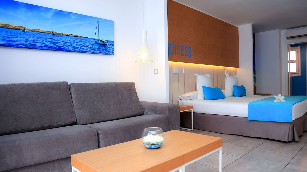 deluxe: 2-os. (możliwość 1 dostawki dla os. dorosłej lub 2 dostawek dla dzieci; dostawka w formie 1-os. lub 2-os. sofy), ok. 40 m², nowoczesny i komfortowo urządzony, indywidualnie sterowana klimatyzacja, łazienka (prysznic, wc; suszarka), optycznie wydzielona część dzienna, internet bezprzewodowy, telewizor, telefon, lodówka; za opłatą: sejf (dodatkowo wymagany depozyt: ok. 10 EUR); bezpłatne łóżeczko dla dziecka do 2 lat; balkon lub taras (stolik i krzesełka); widok na basen za dopłatą.